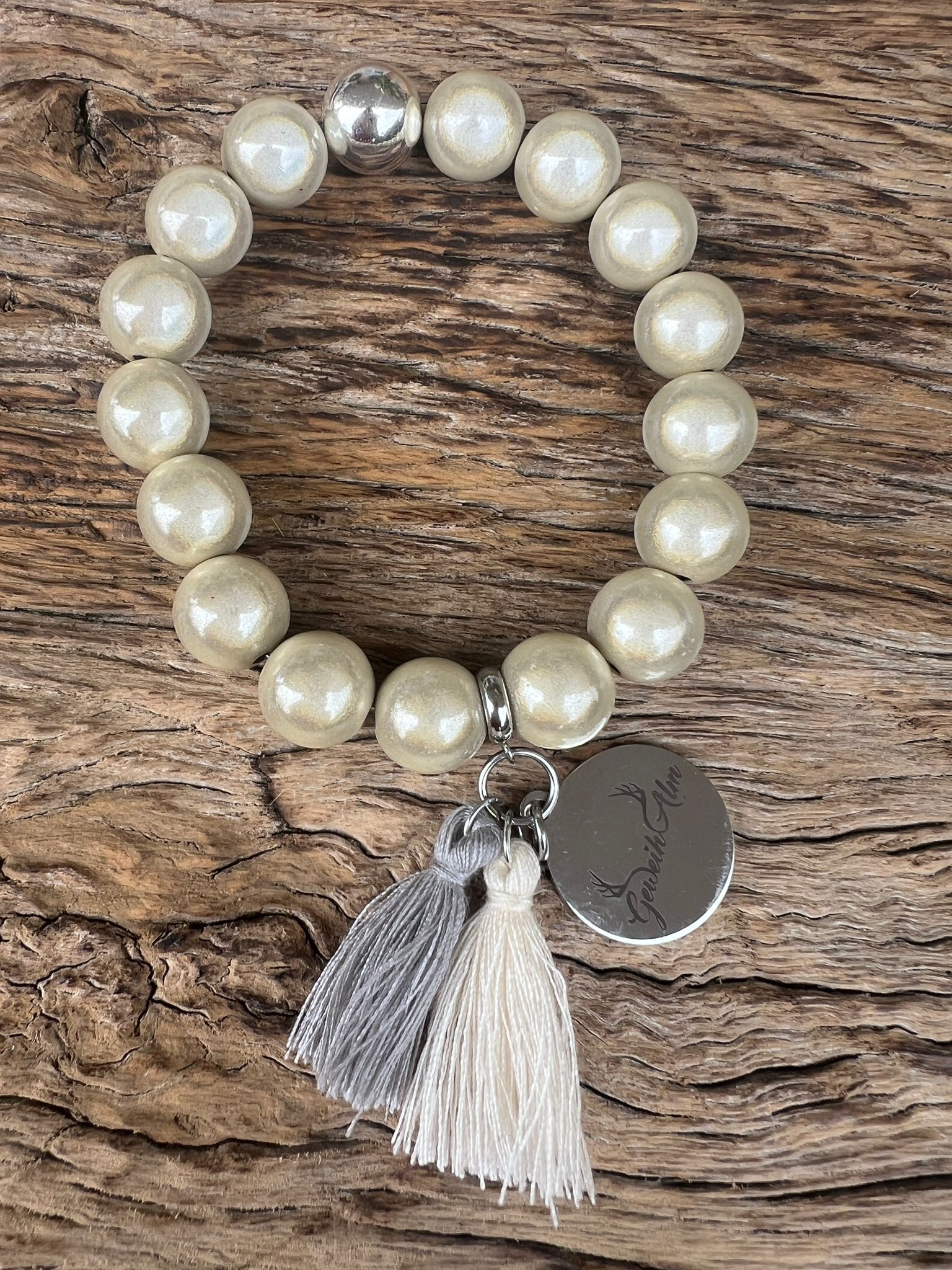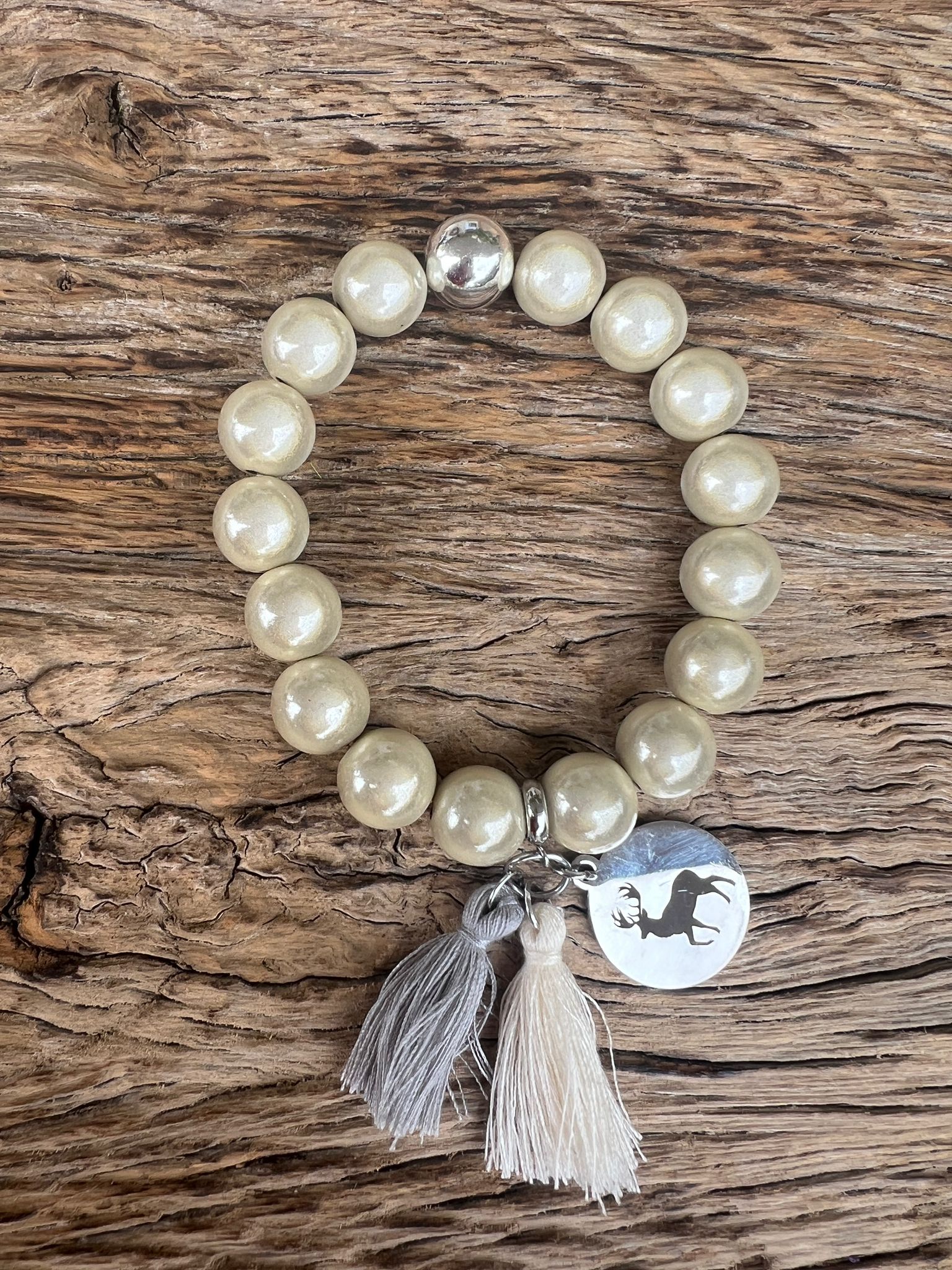 Entdecke unsere handgefertigten Perlenarmbänder mit graviertem Coin! Ein majestätischer Hirsch auf einer Seite, unser Logo auf der anderen, ergänzt durch zwei niedliche Quasten. Jedes Detail, einschließlich der vergoldeten 3D-Abschlussperle, strahlt Luxus aus. Verfügbar in verschiedenen Farben, passt in One Size (Handgelenk: 13-18 cm). Ein Blickfang und Must-Have für stilbewusste Frauen!