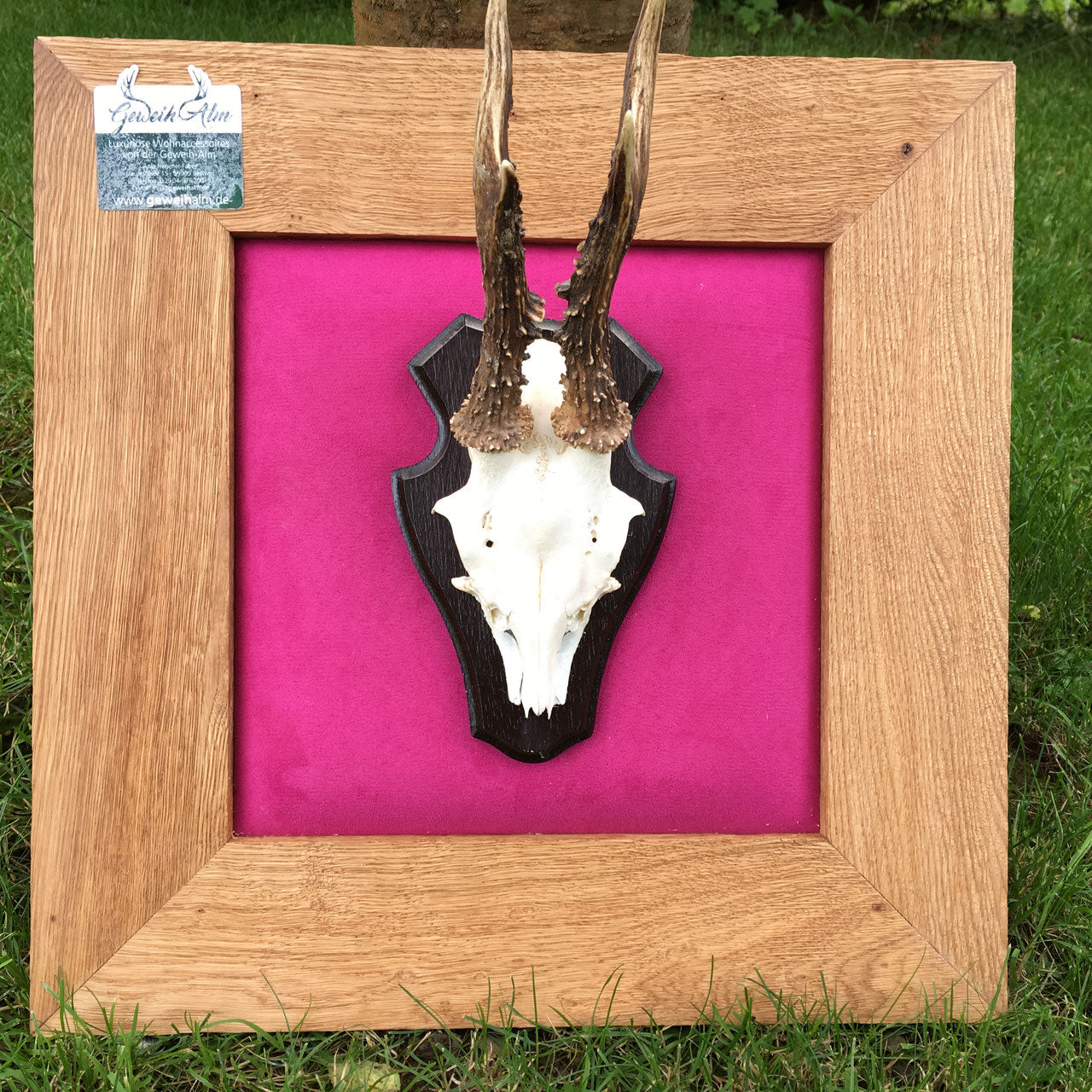 Bild mit Rehgehörn auf pinkem Samt