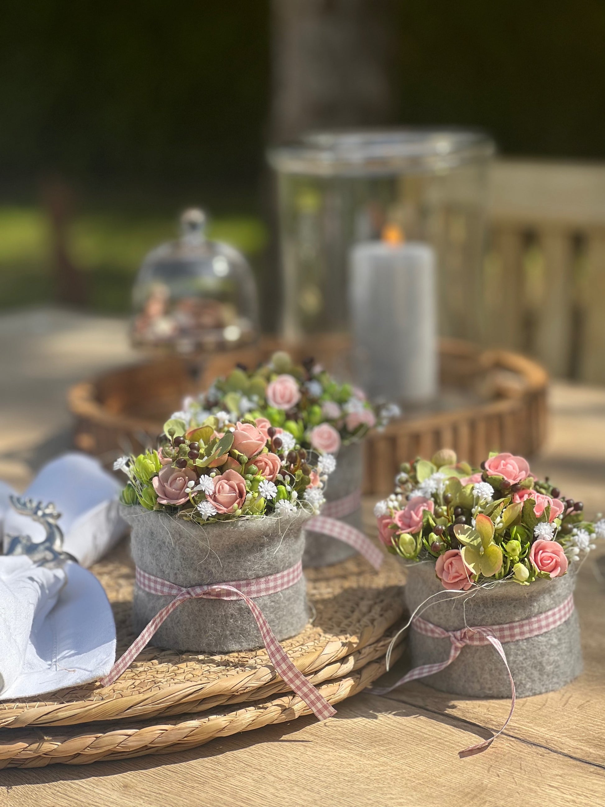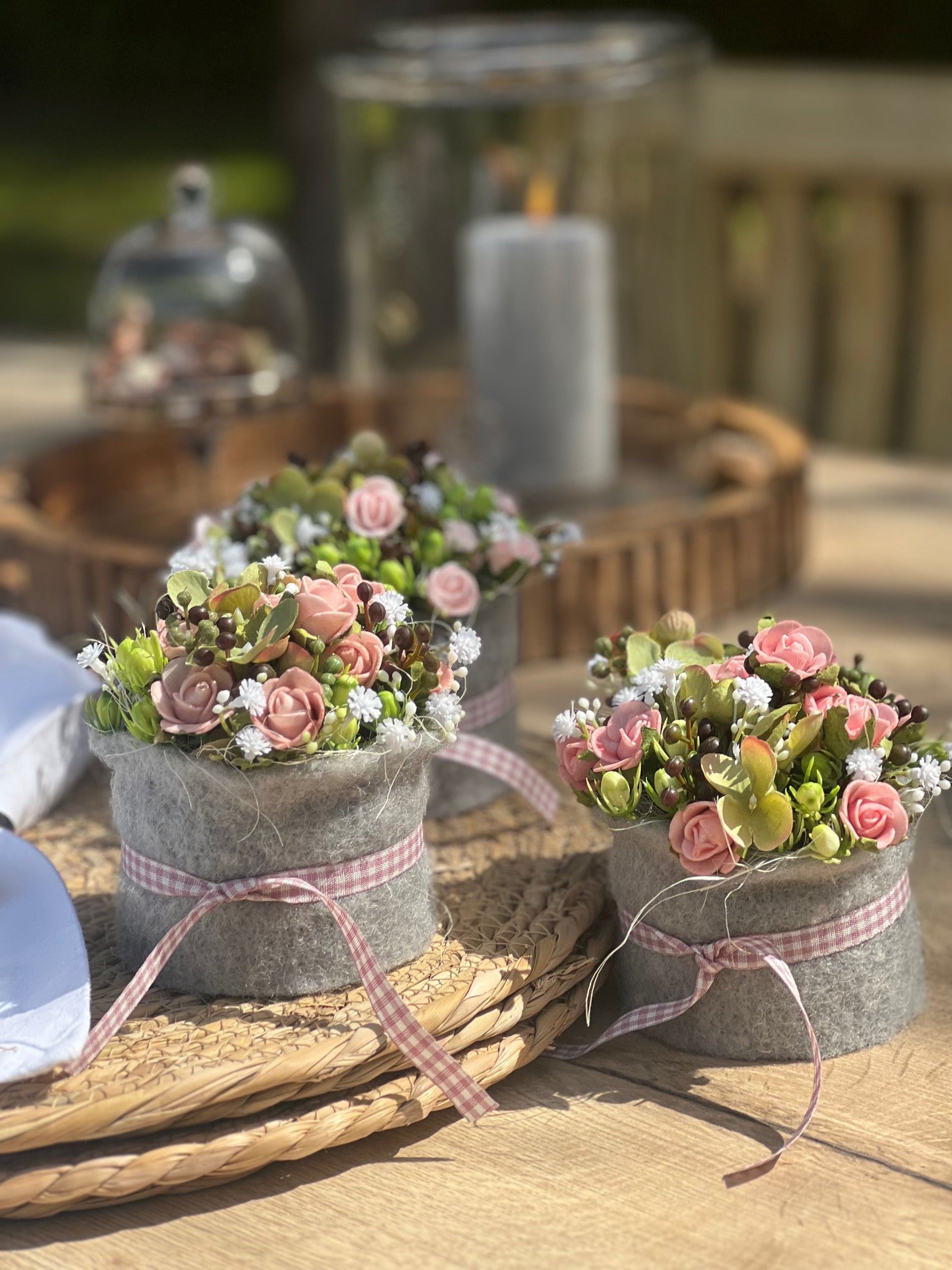 Die Filzmanschette und Schleife verleihen dem „Törtchen“ einen wunderbaren, alpinen Touch.