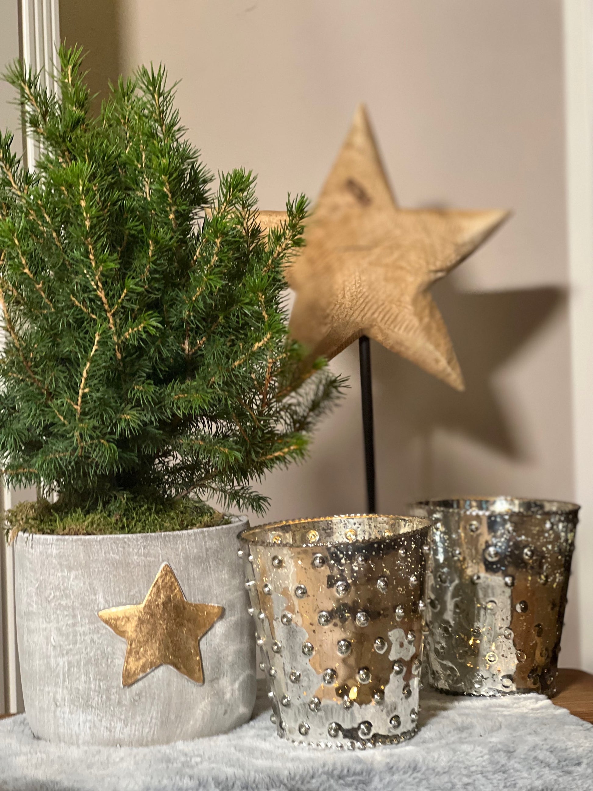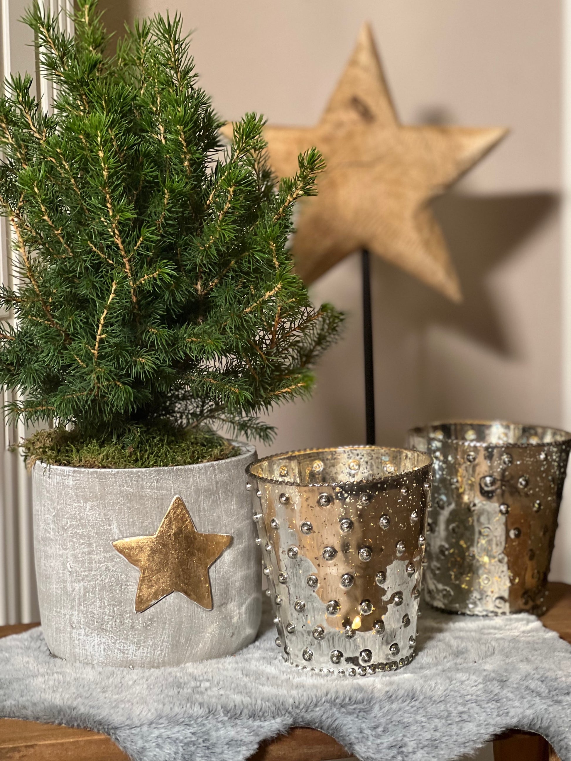 Massiver Blumentopf mit Goldstern 15 x 13 cm