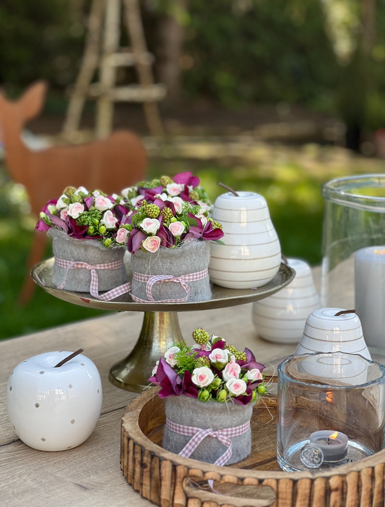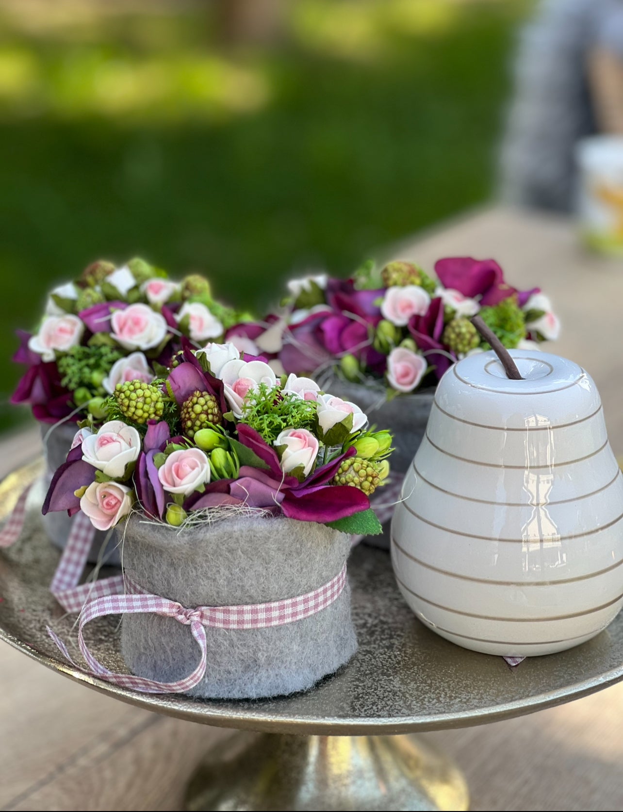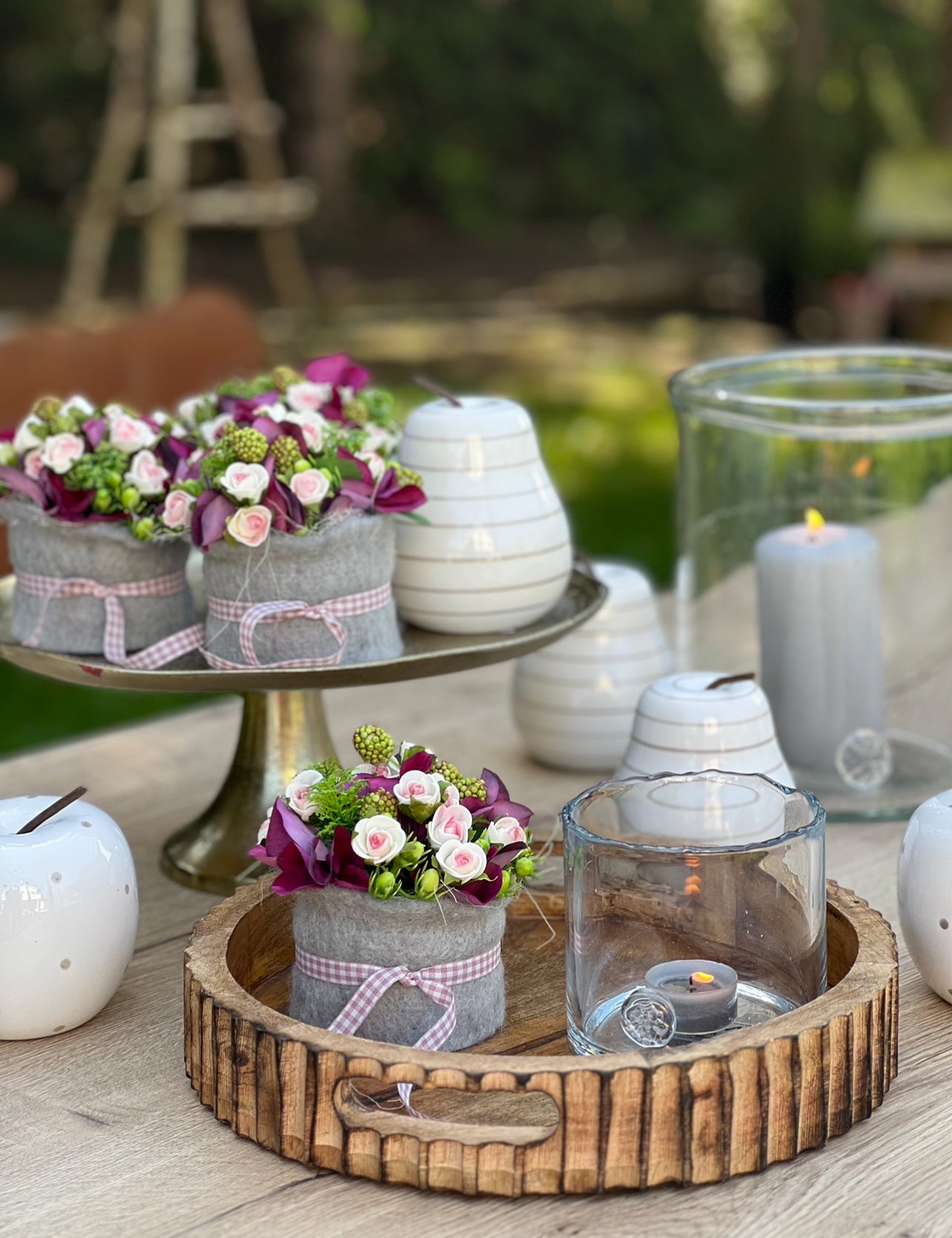Die Filzmanschette und Schleife verleihen dem „Törtchen“ einen wunderbaren, alpinen Touch.