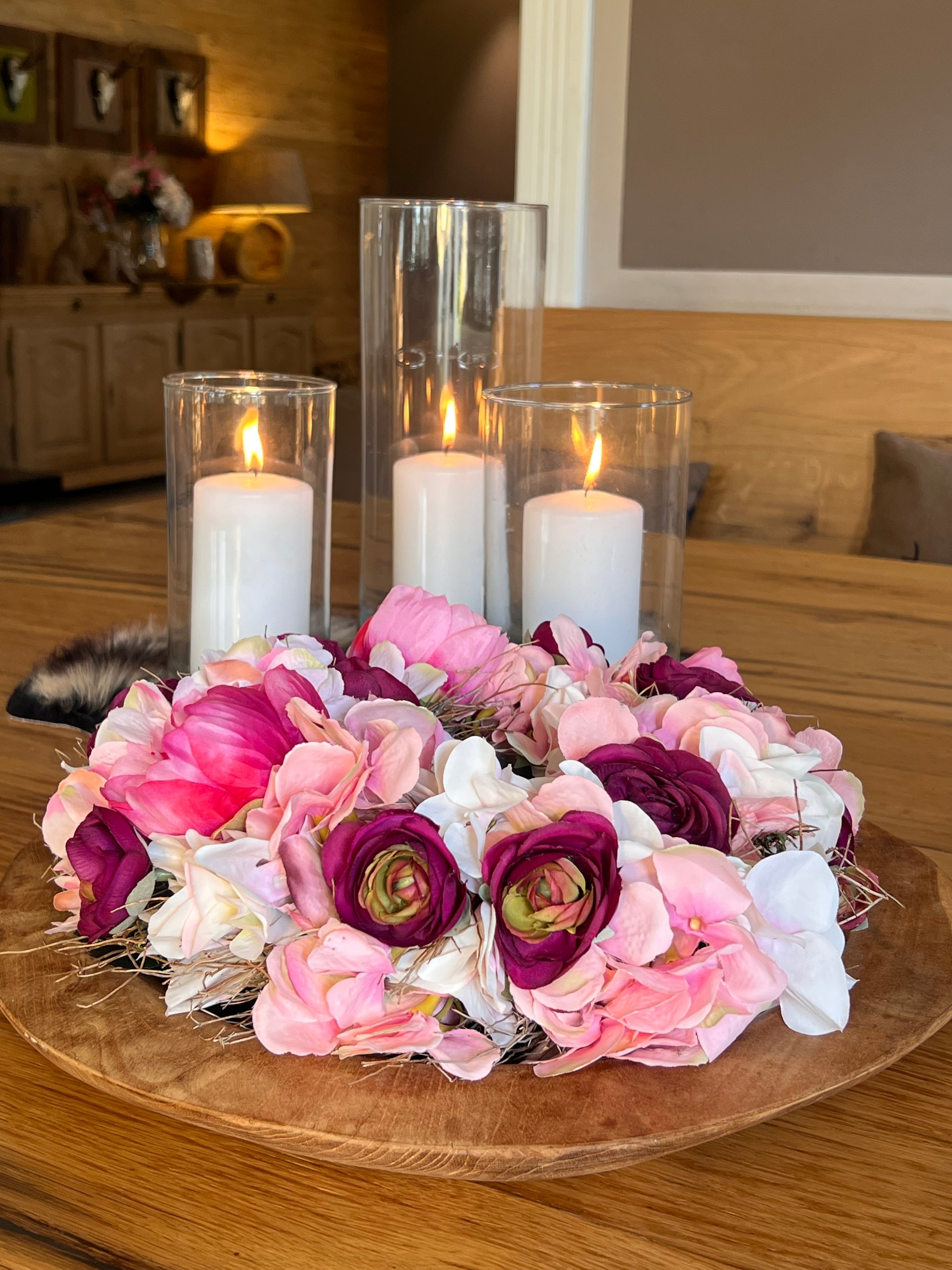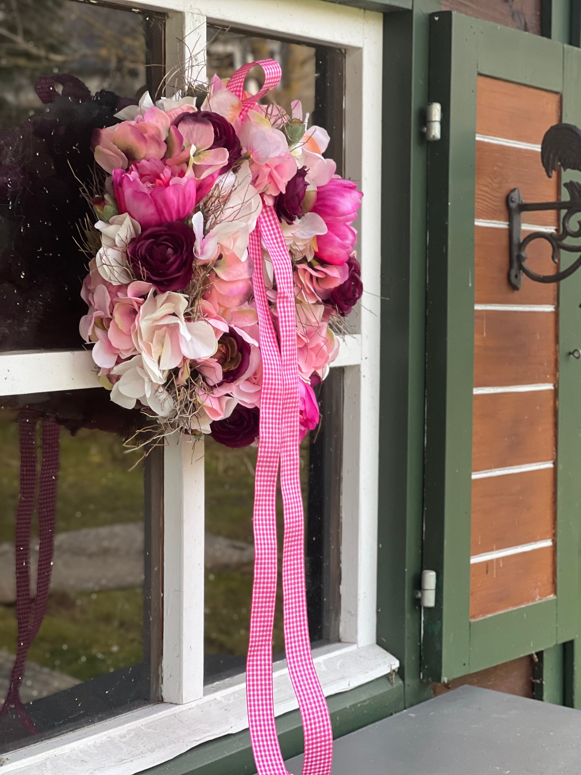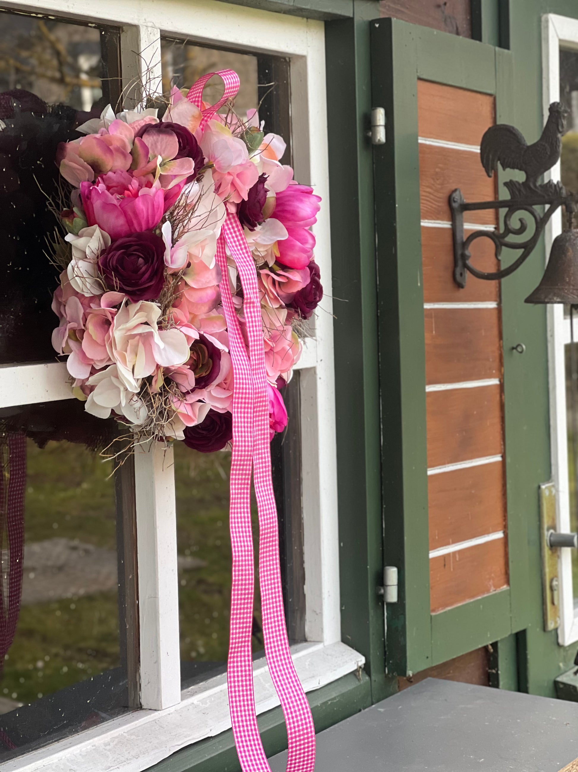 Zarter Blütenkranz in Rose - und Beerentönen mit frühlingshaftem Charme.