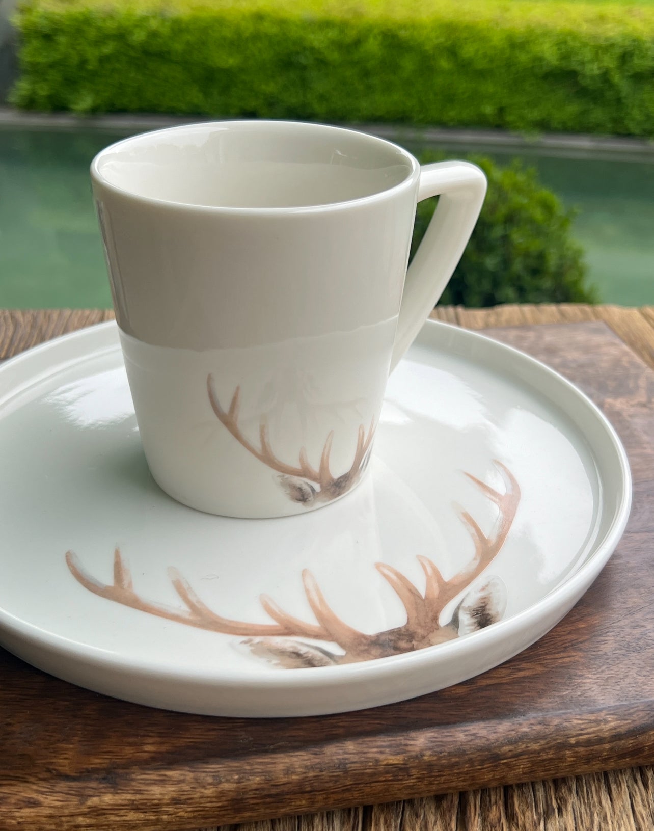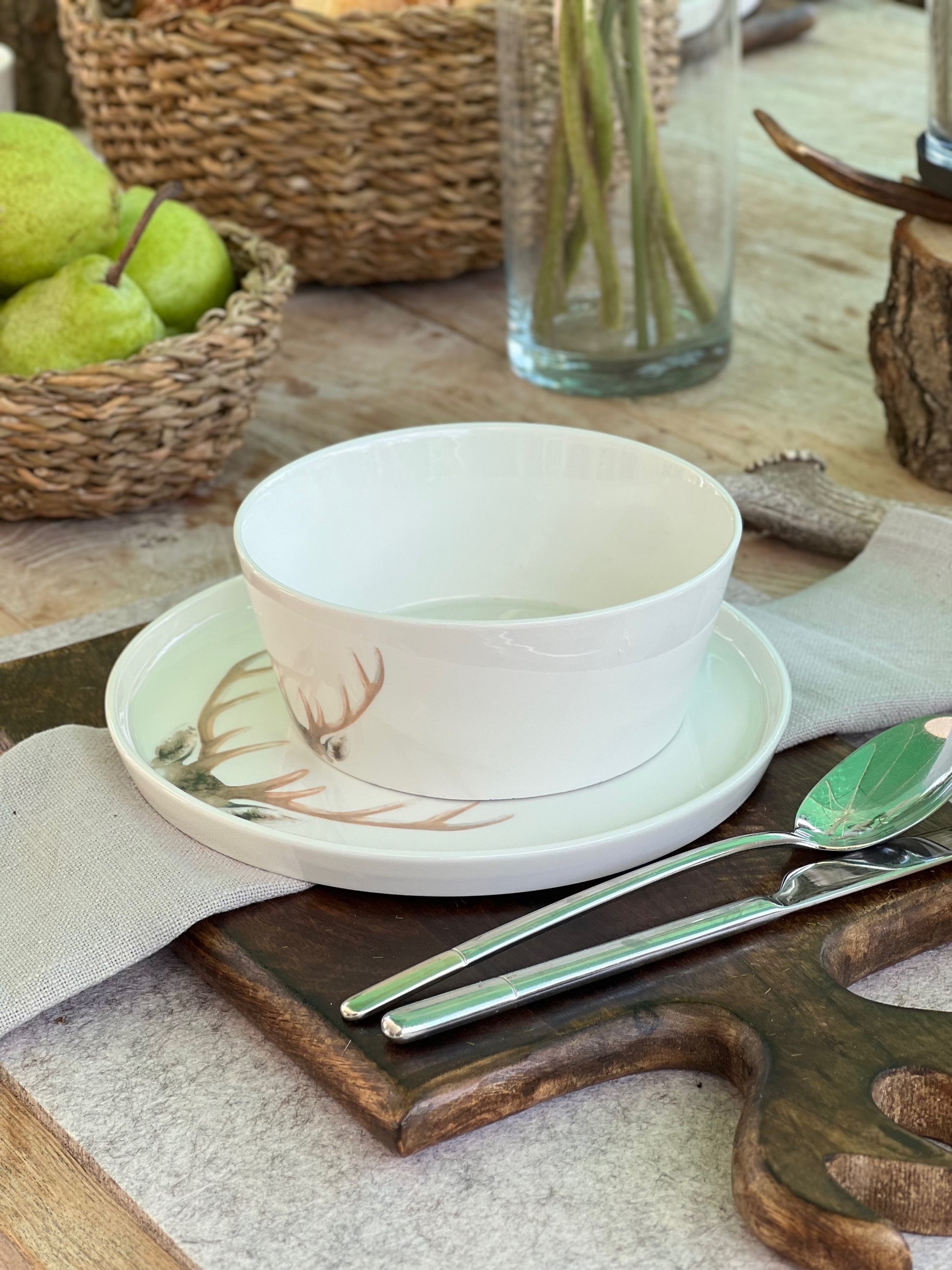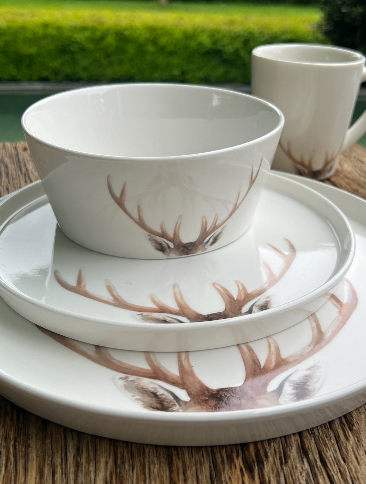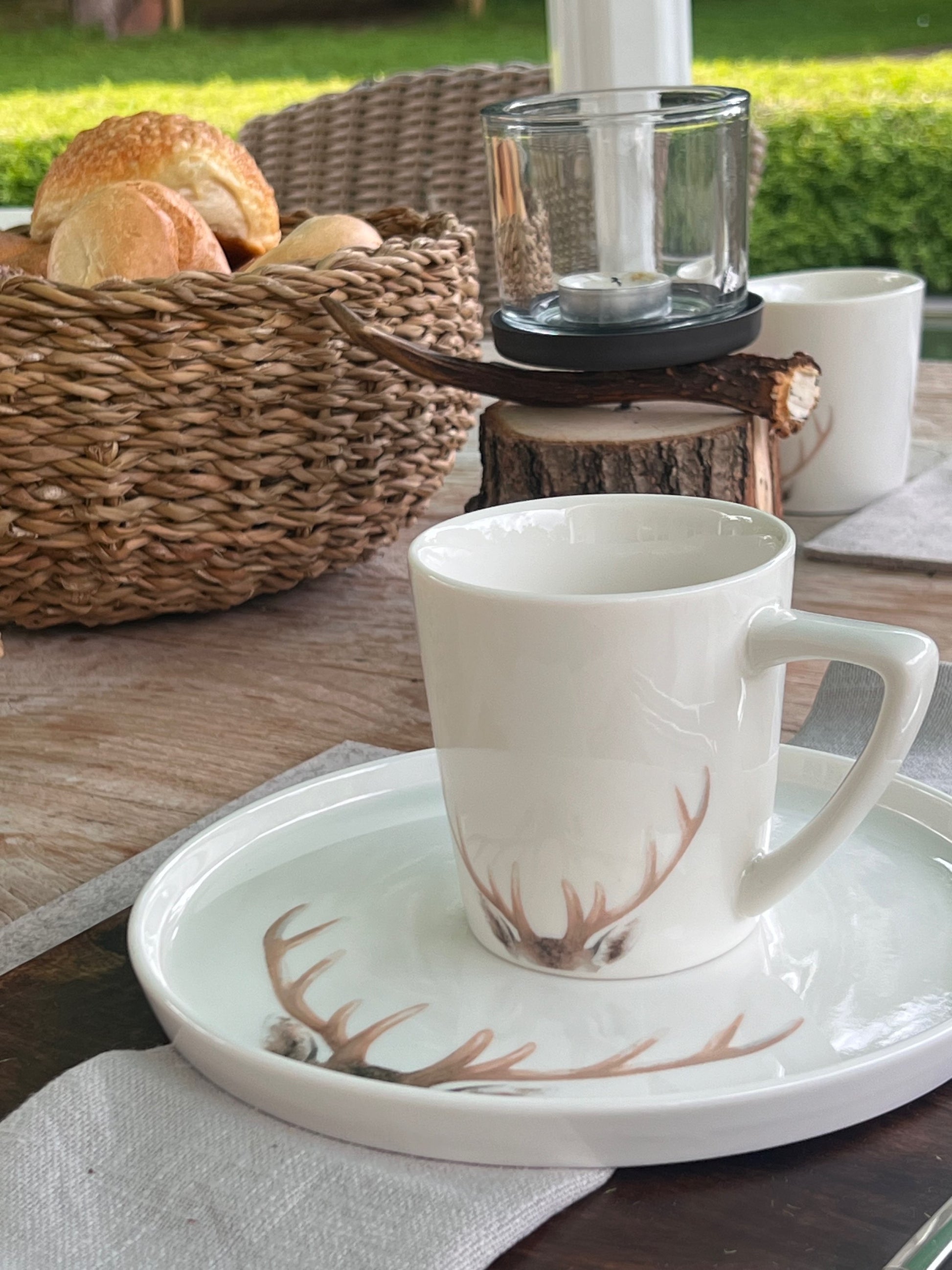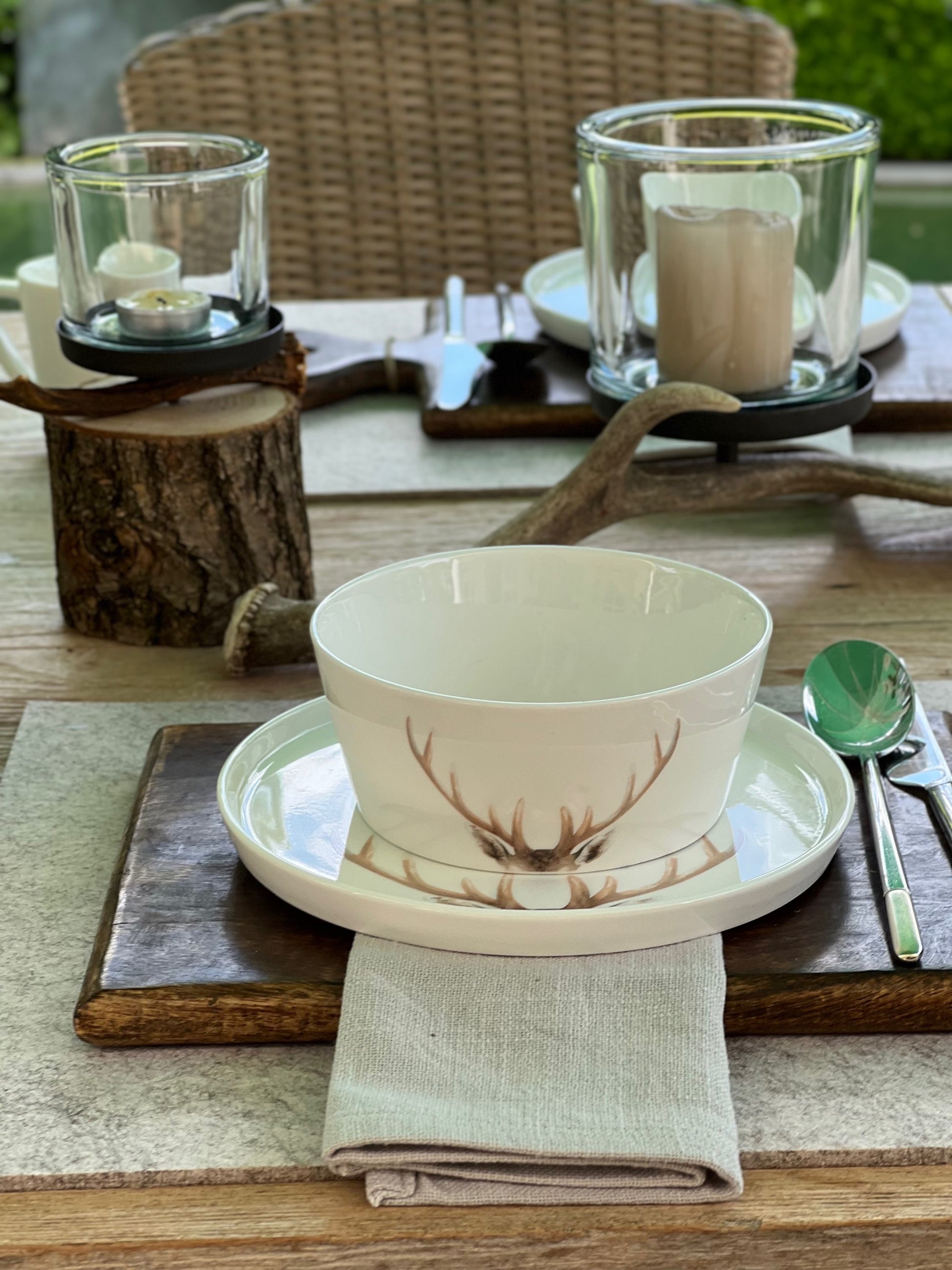 Entdeckt unsere faszinierenden Porzellanserie ASPEN. Hier verschmilzt zeitlose Eleganz mit der unberührten Schönheit des Hirschgeweihes zu einer einzigartigen Komposition. Das Dekor Hirsch fängt die Magie des Waldes ein und verleiht deinem Tisch ein natürliches Flair, während die Porzellanqualität für puren Genuss steht.