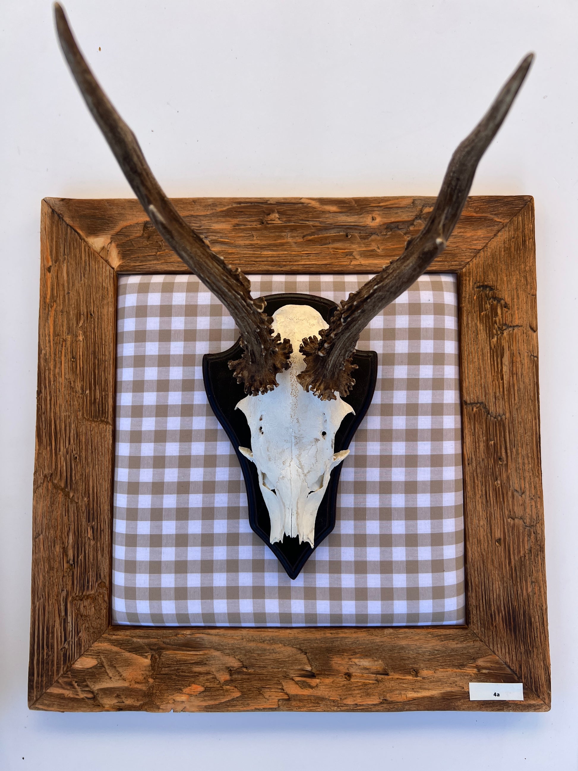 Dieses handgefertigte Bild mit echtem Rehgehörn verbindet alpine Tradition mit modernem Design und schafft so einen einzigartigen Blickfang im Chalet-Stil.