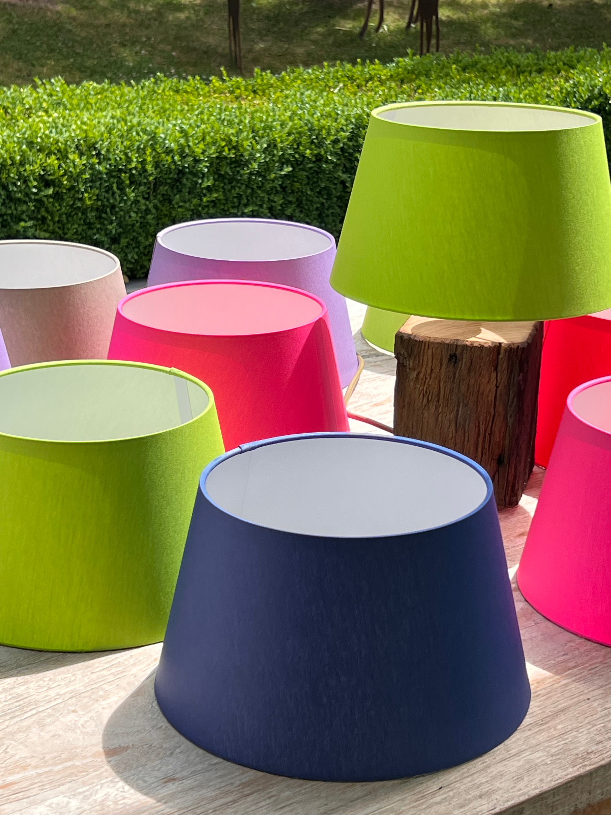 Wunderschöner Lampenschirm in der Farbe blau. Die Lampenschirme werden in einer kleinen Manufaktur individuell handgefertigt.