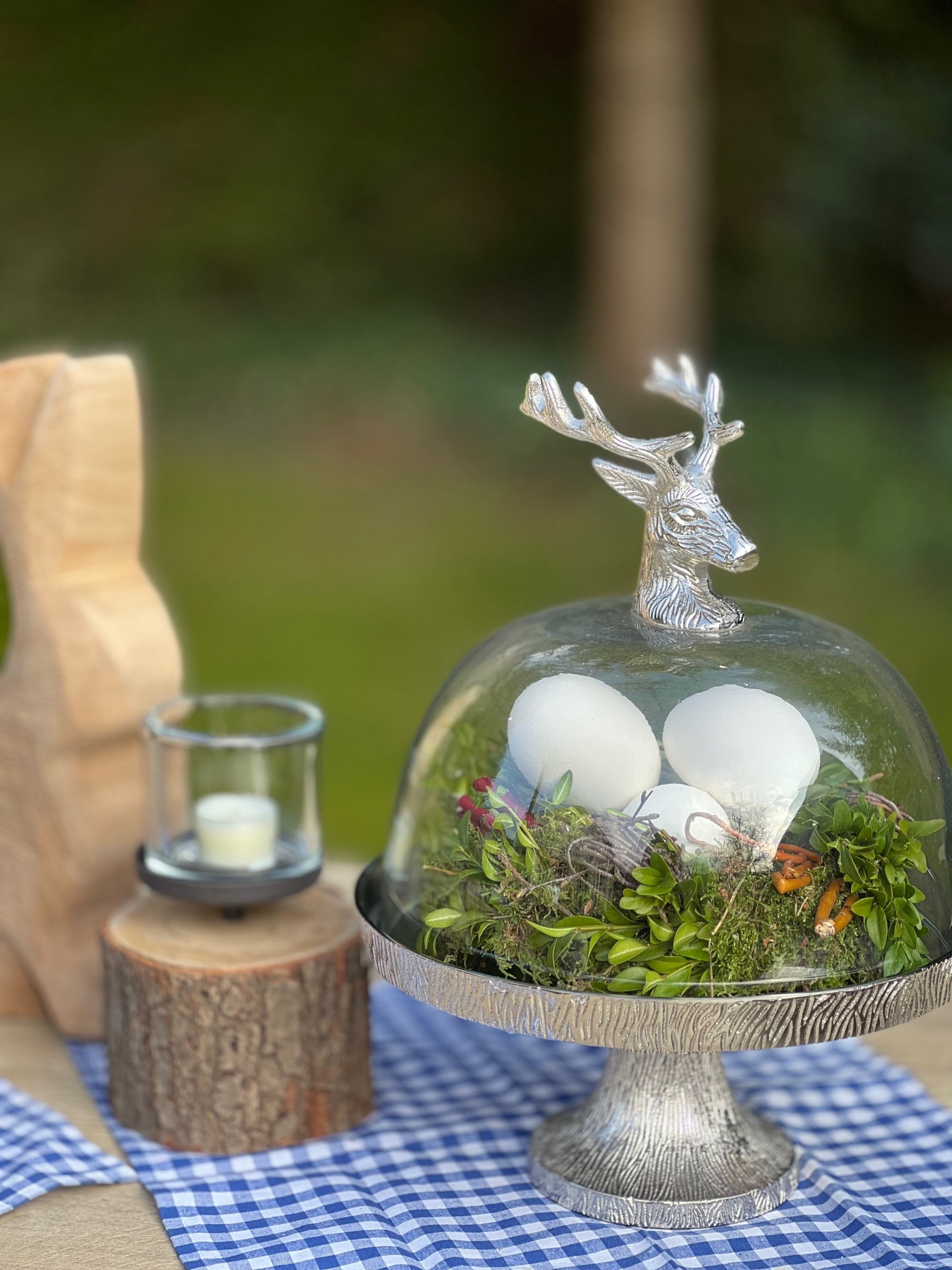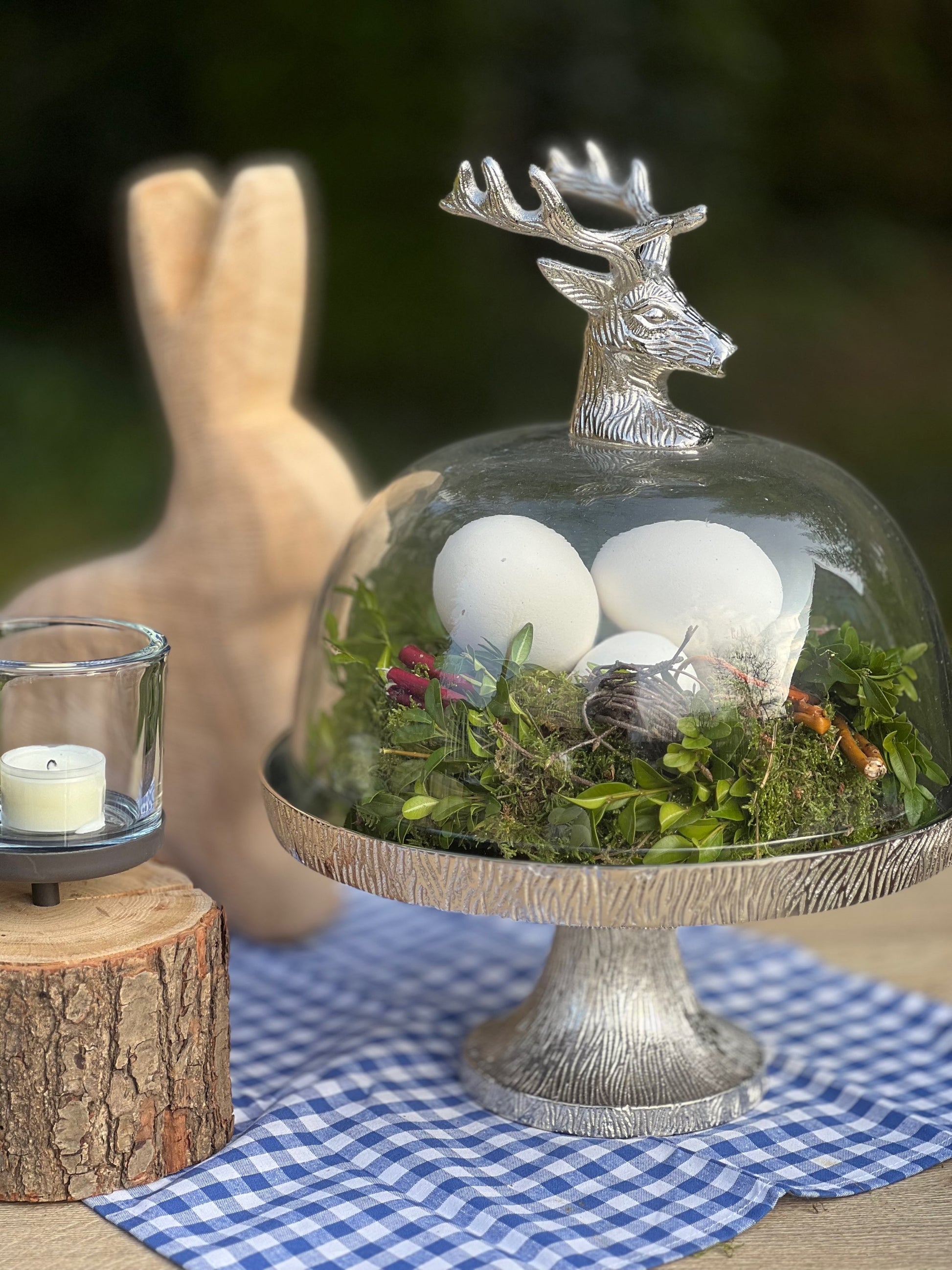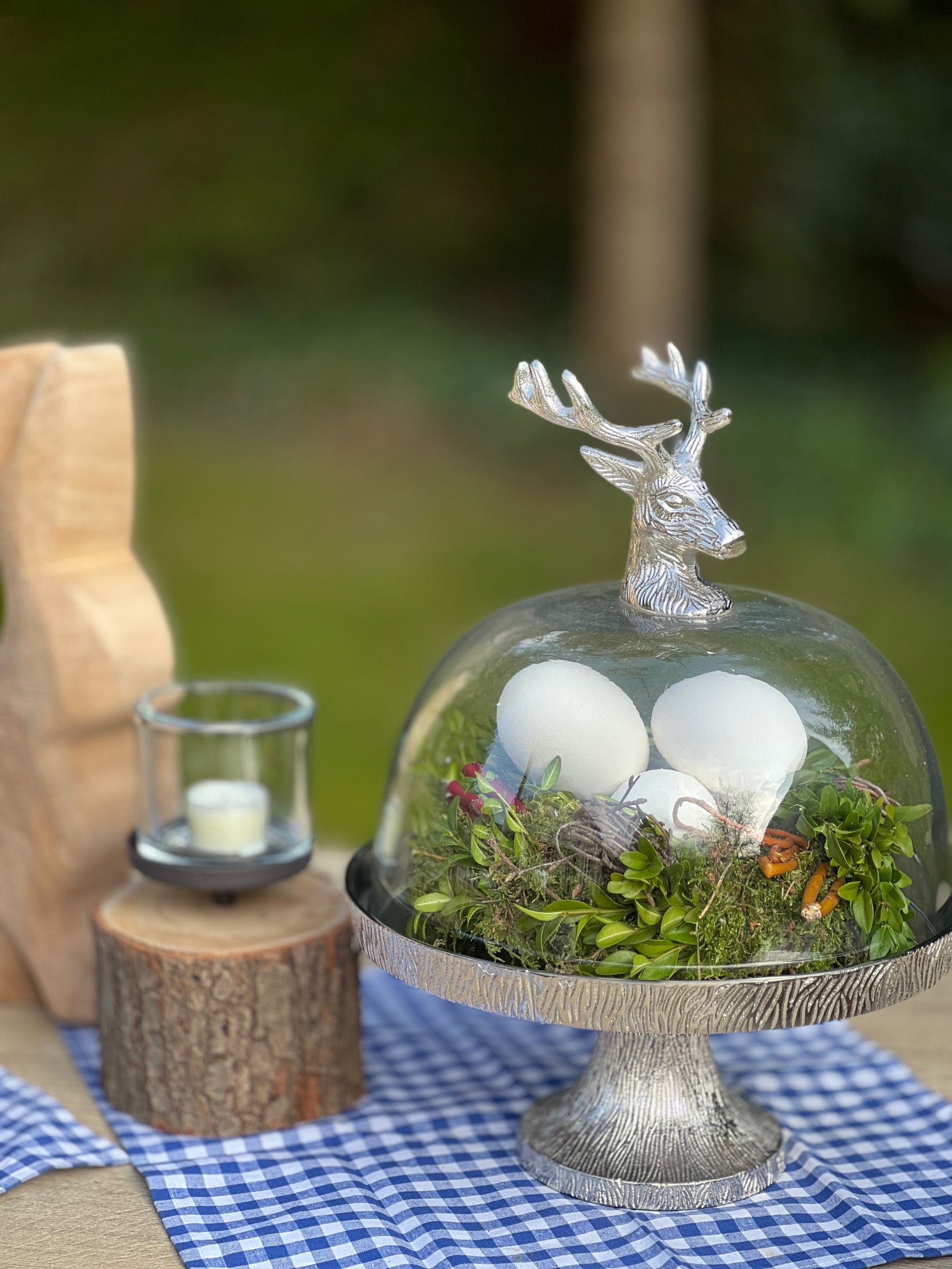 Unsere Hirsch Glas Glocke ist ein stilvolles und raffiniertes Deko-Stück für alpine Interieurs. Der Griff in Form eines Hirschkopfes verleiht ihm eine authentische alpine Note. Jede Glocke ist ein handgefertigt. Die Glocke ist perfekt, um Ihren Wohnraum mit einem Hauch von alpinem Flair zu schmücken und ist ein schönes, handgefertigtes Kunstwerk, das sowohl Tradition als auch Eleganz ausstrahlt. Mit dieser Hirsch Glas Glocke können Sie Ihre Liebe zur alpinen Dekoration in Ihr Zuhause integrieren.