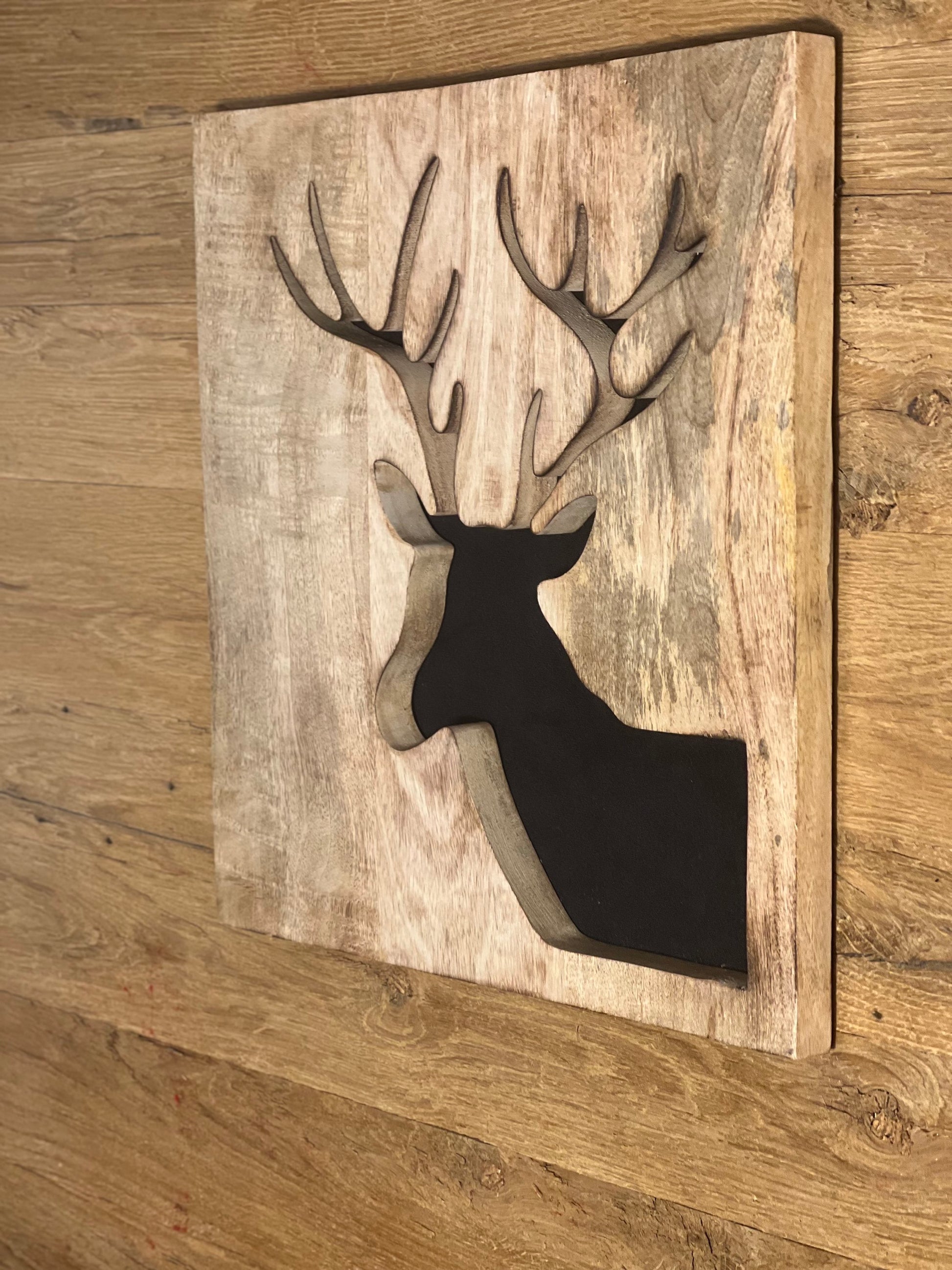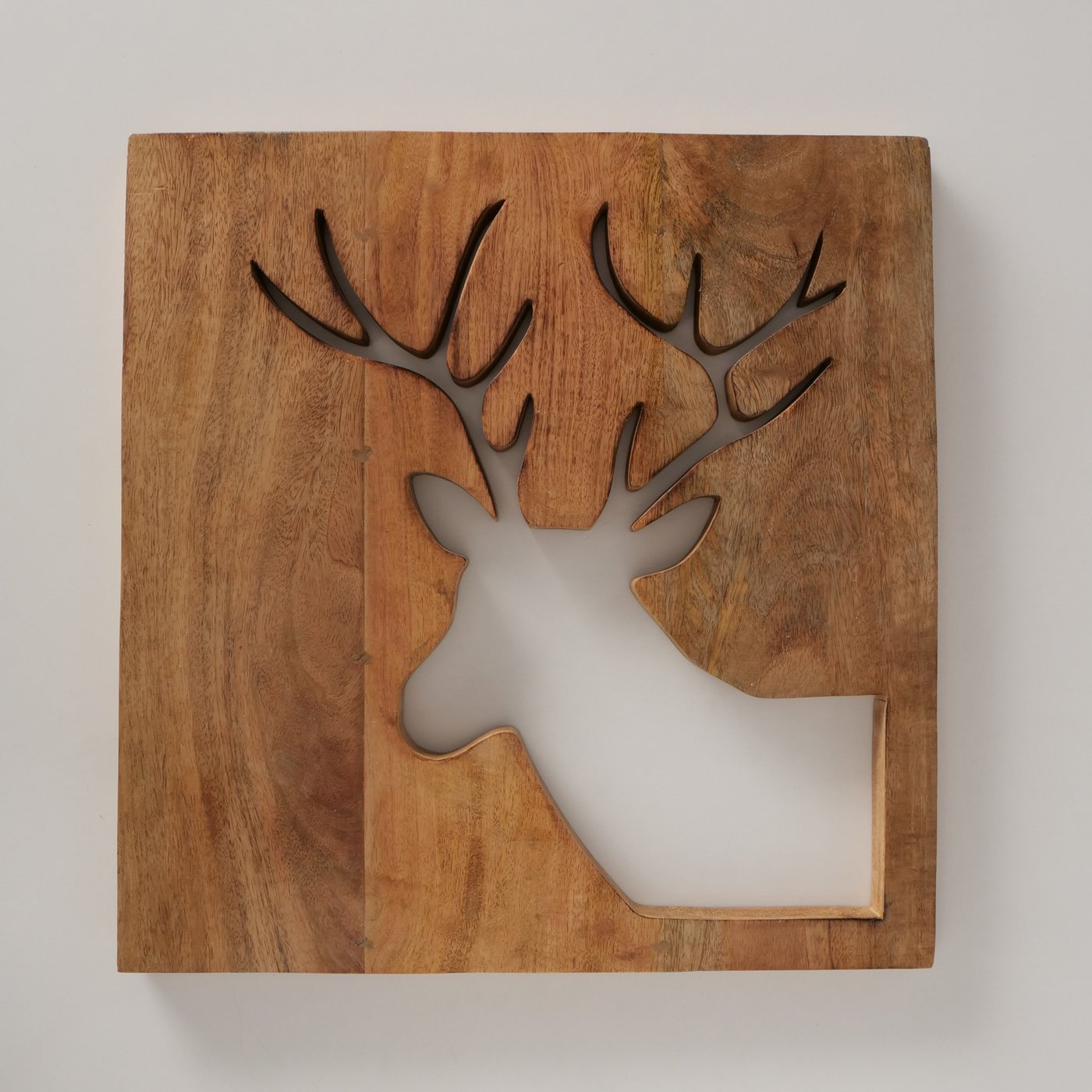 Unsere exklusive Wanddekoration ist ein echter Blickfang für dein Zuhause. Das Bild aus Holz zeigt einen ausgeschnittenen Hirschkopf (Cut-Out) und hat eine Größe von 40 x 40 cm. Mit diesem einzigartigen Kunstwerk verleihst du deinem Wohnraum eine rustikale und zugleich moderne Note. Hol dir jetzt dieses besondere Wandobjekt und bringe die Schönheit der Natur in deine vier Wände!