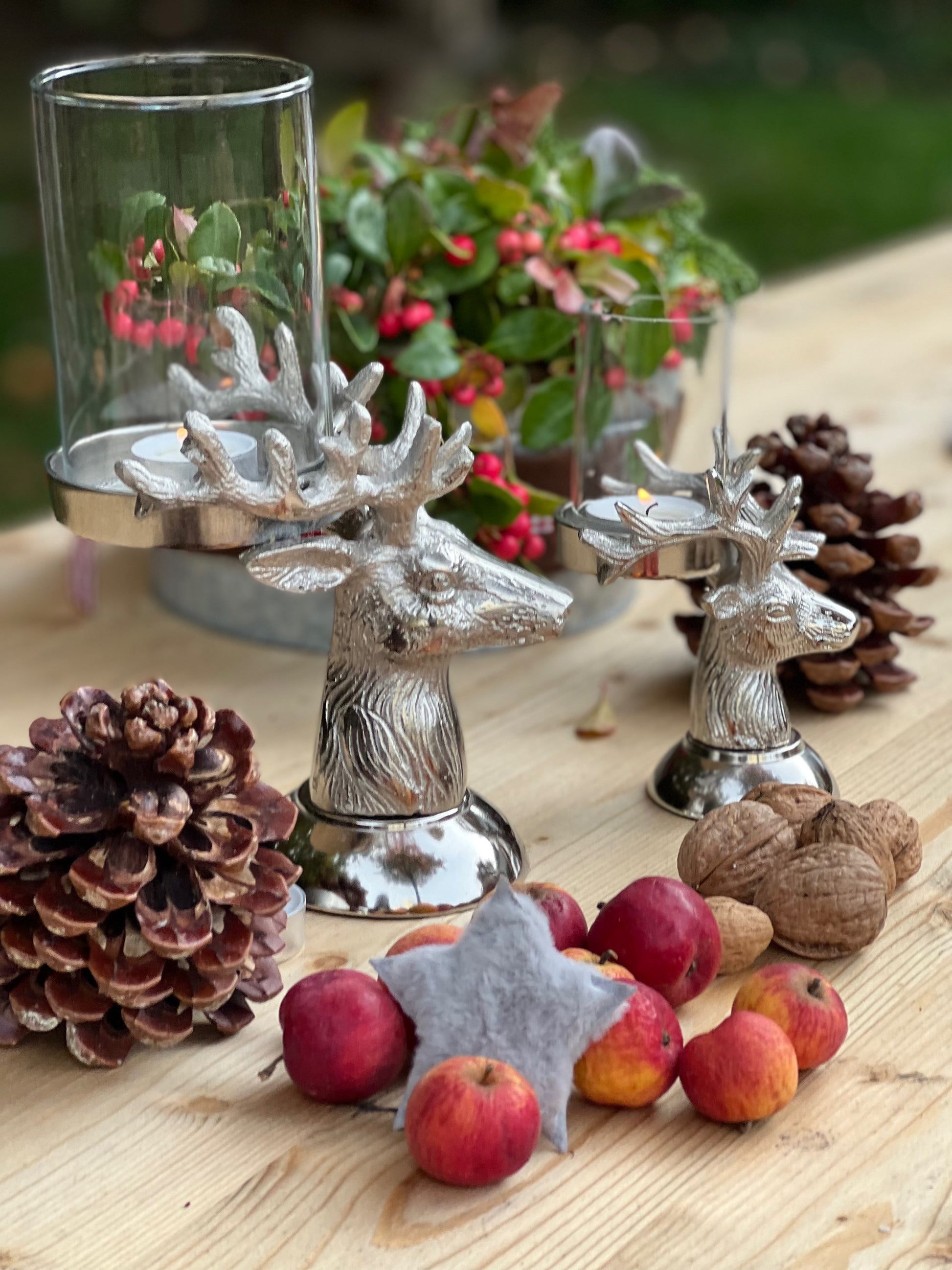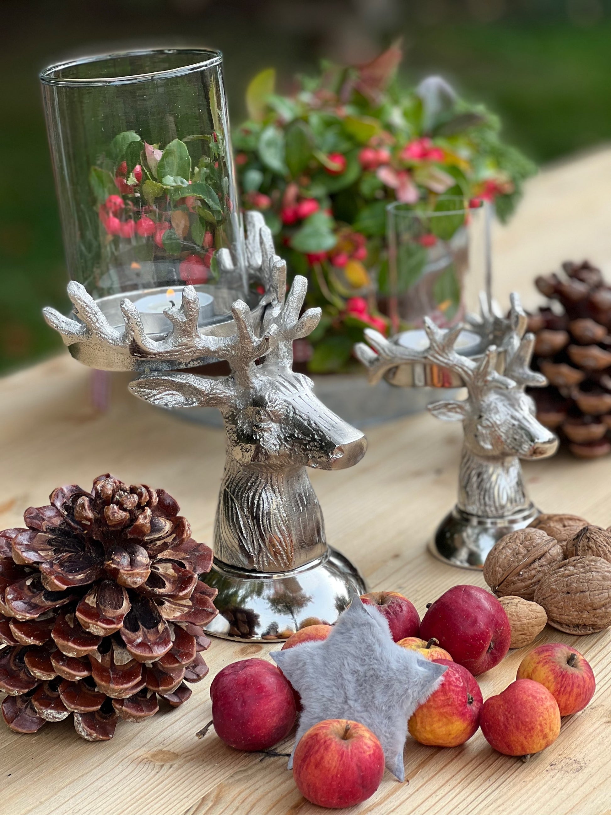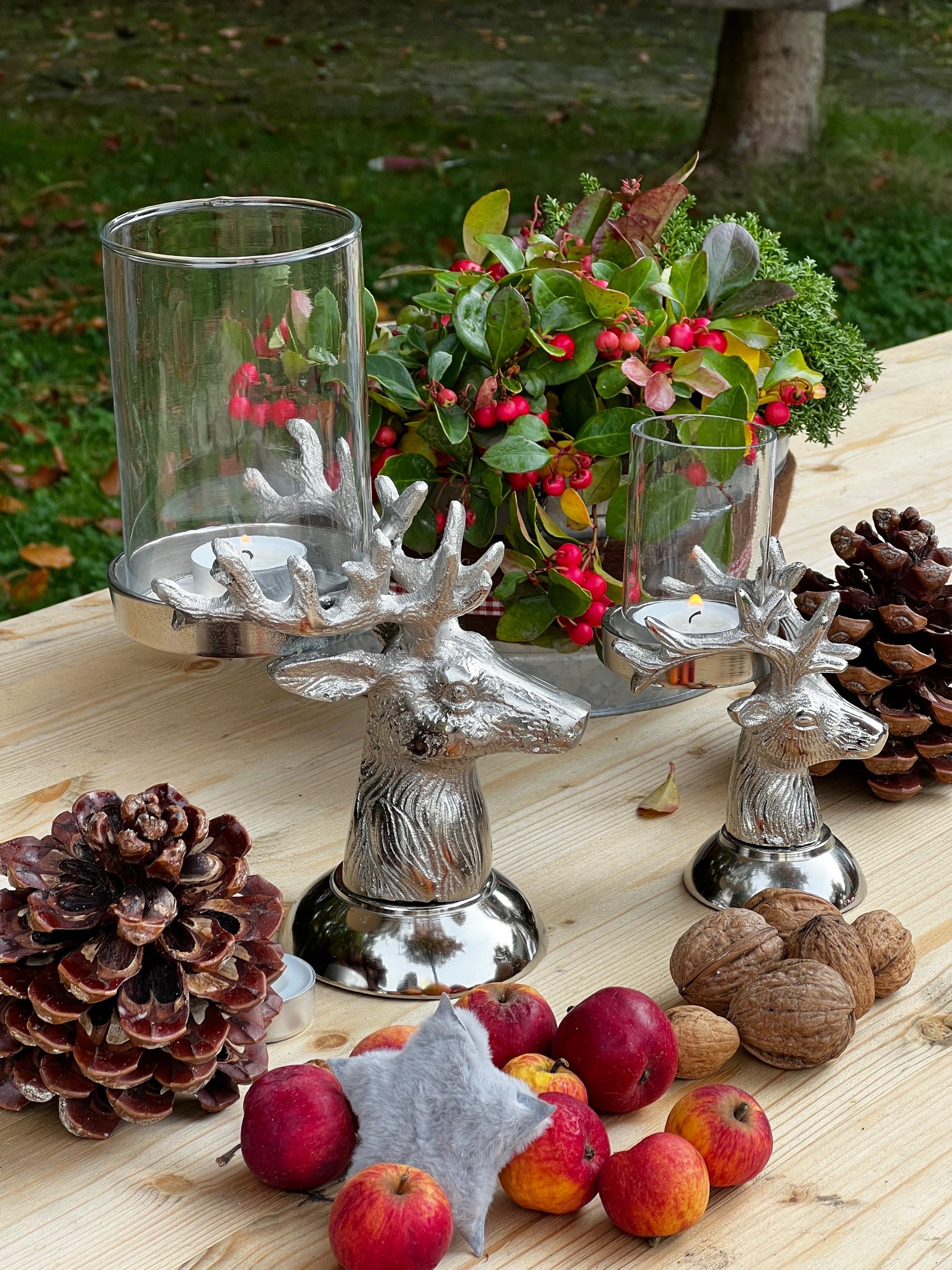 Traumhaft schöner, massiver Hirschkopf Leuchter mit abnehmbaren Windlichtglas.