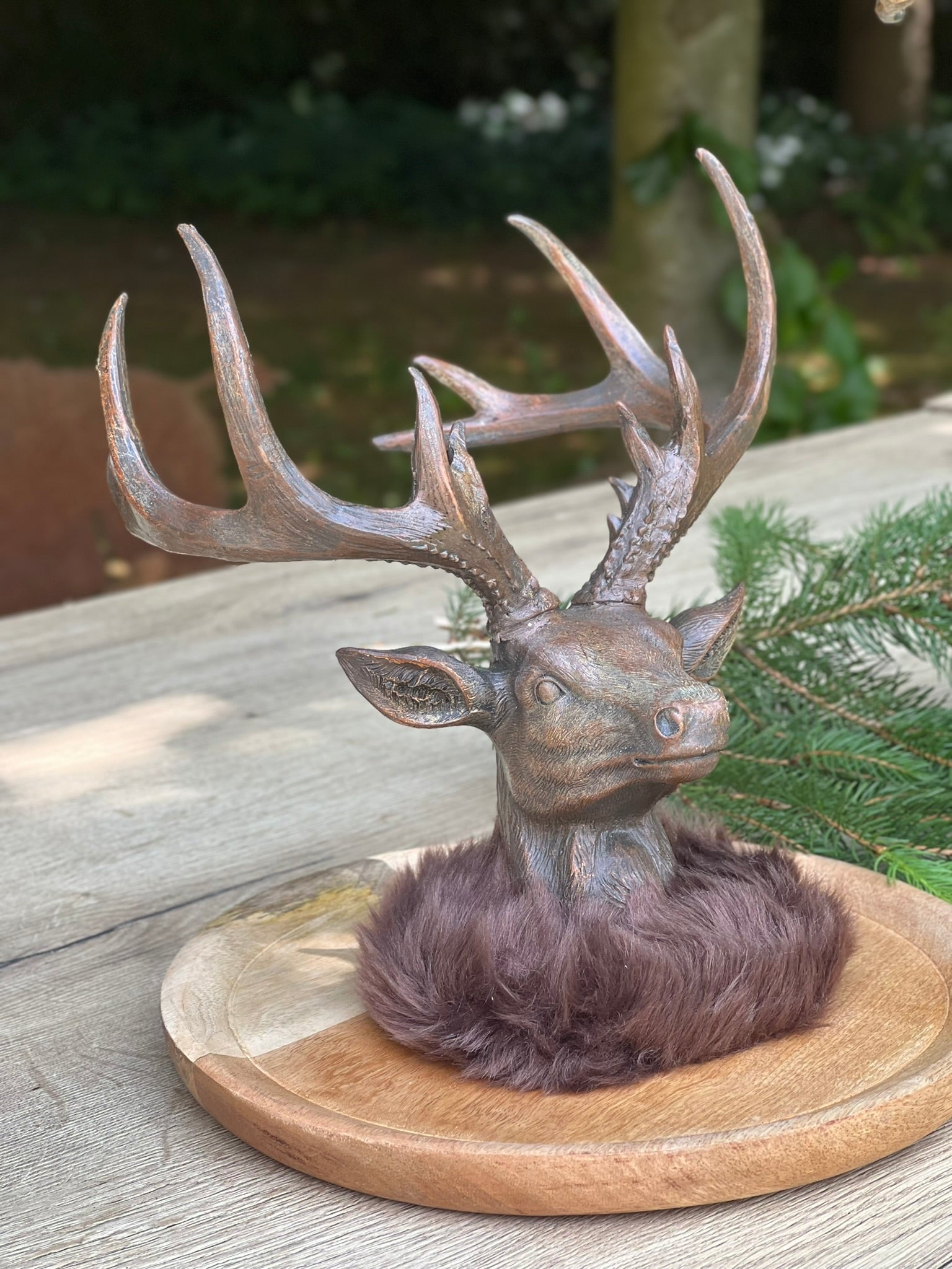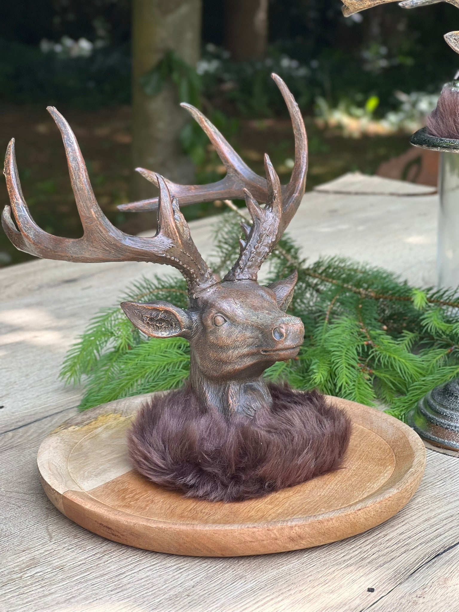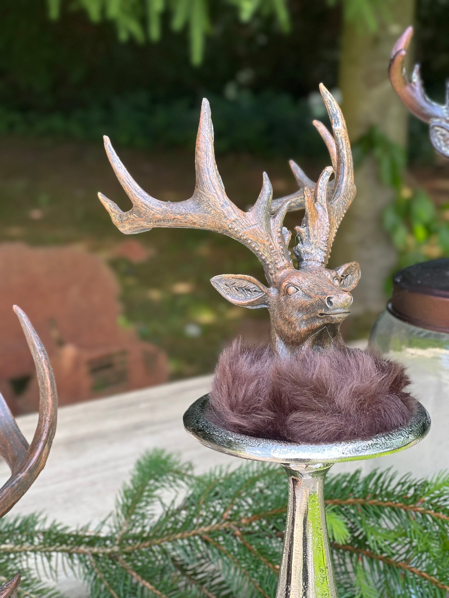 Unser Hirschkopf mit Fellmanschette ist ein edles und authentisches Dekoobjekt für alpine Wohnaccessoires. Der braune Hirschkopf ist mit einer Kunstfellmanschette verziert, die ihm ein besonders naturgetreues Aussehen verleiht. Erhältlich in verschiedenen Größen, eignet sich dieses Dekoobjekt sowohl für große Wohnräume als auch für kleinere Ecken, um eine gemütliche und alpine Atmosphäre zu schaffen. Dieses edle Accessoire ist ein echter Blickfang und verleiht jedem Raum einen Hauch von alpenländischem Flair. Perfekt für alle, die einen rustikalen und naturnahen Einrichtungsstil lieben.