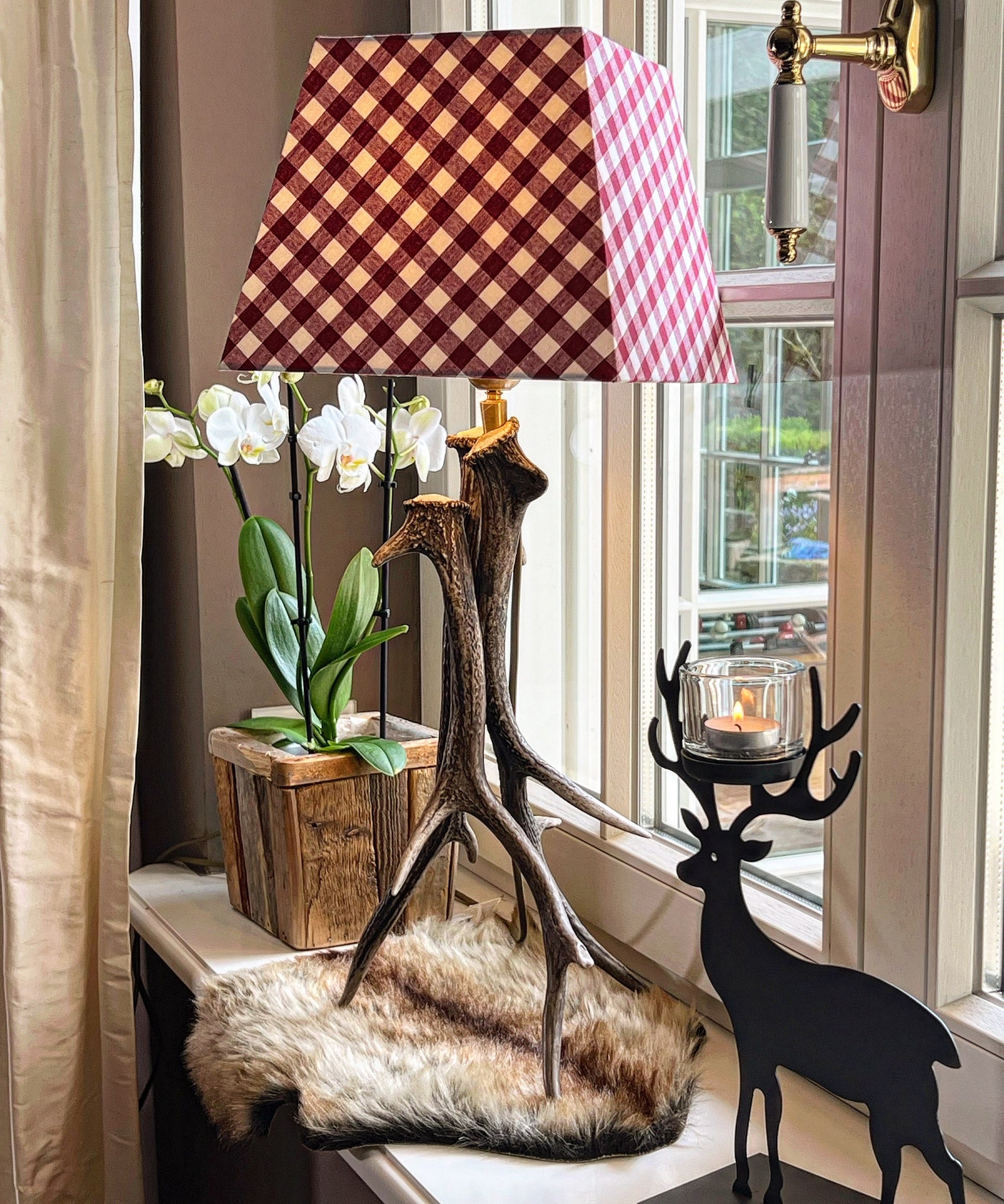 Diese karierte Tischlampe verbindet traditionelles Alpenchic mit handwerklicher Präzision. Gefertigt aus echten Geweihen und ausgestattet mit einer E 27 Fassung bietet sie geprüfte Sicherheit und einzigartige Beleuchtungslösungen. Der Landhaus-Schirm im klassischen Alpenkaro setzt rustikale Akzente und sorgt für ein gemütliches, warmes Licht – ideal für stilbewusste Wohndekoration im Alpenstil.