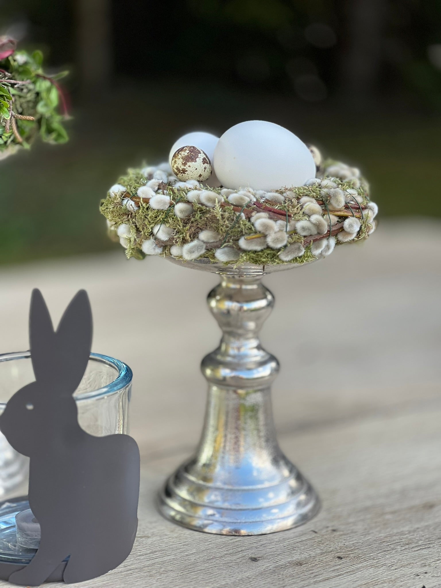 Das exklusive Design in zwei verschiedenen Größen bietet vielseitige Gestaltungsmöglichkeiten für Ihre Wohnräume. Ideal auch zur Inszenierung von Frühlingskränzen und saisonalen Dekorationen. Ein wunderschönes Accessoire für elegante Tischgestaltung.