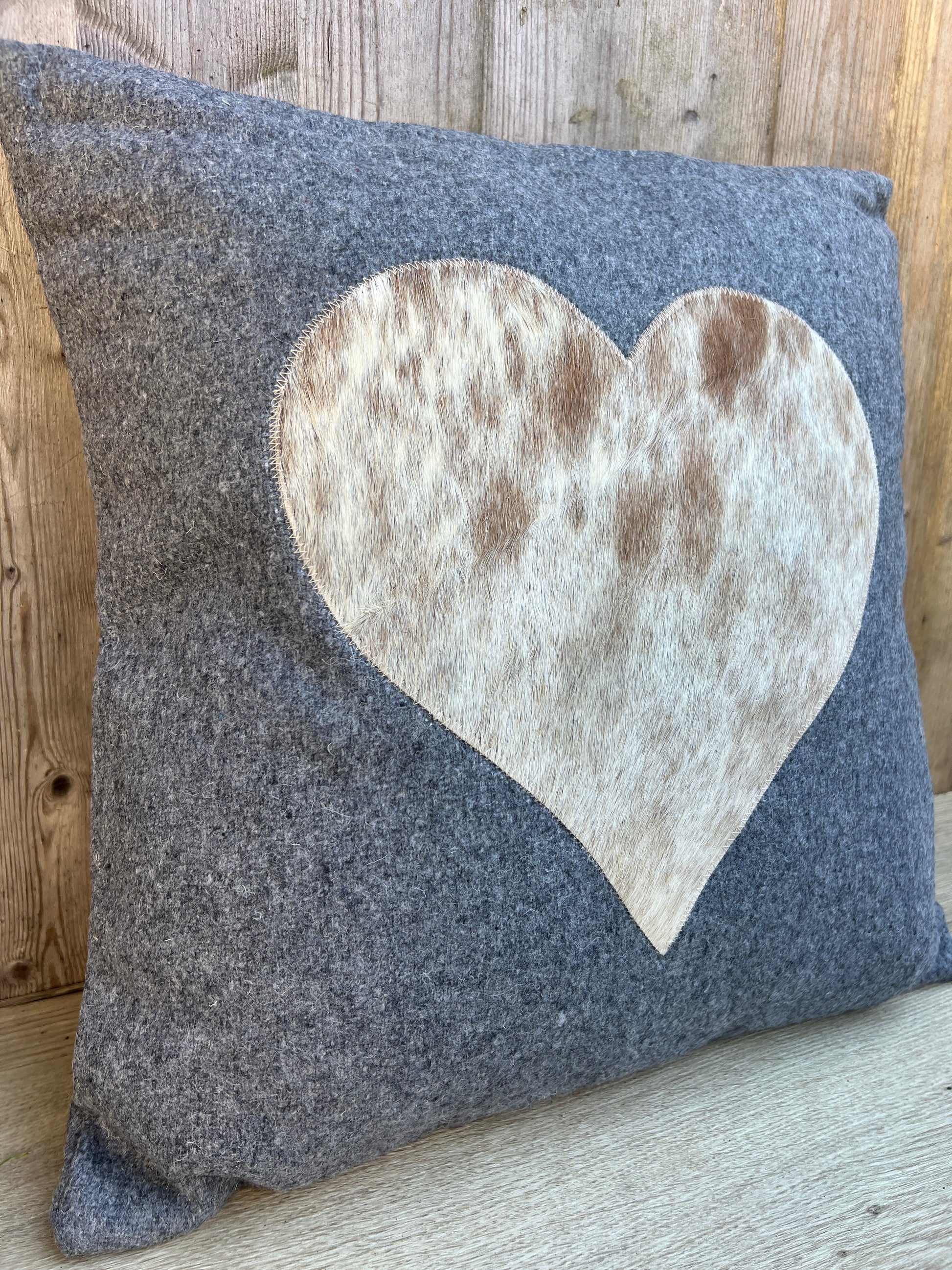 Das Kissen ALMLIEBE aus hochwertigem Wollstoff verbindet rustikalen Hüttenzauber mit einem einzigartigen Kuhfellherz. Es schafft eine gemütliche Atmosphäre in jeder Alm- oder Wohnstube und bringt naturverbundenes Flair direkt zu dir nach Hause. Perfekt für entspannte Stunden und warme Wohlfühlmomente. Inklusive Füllung.
