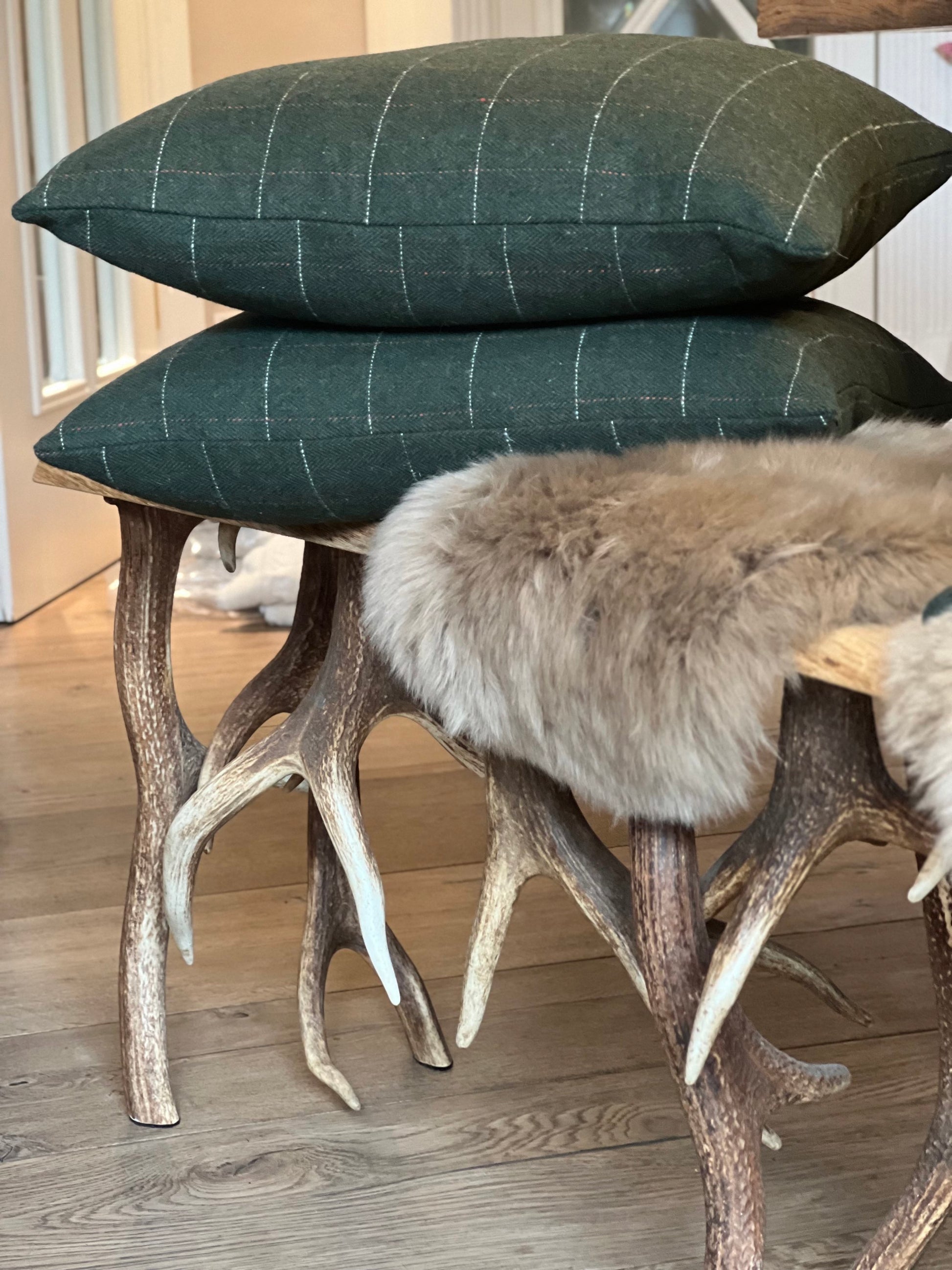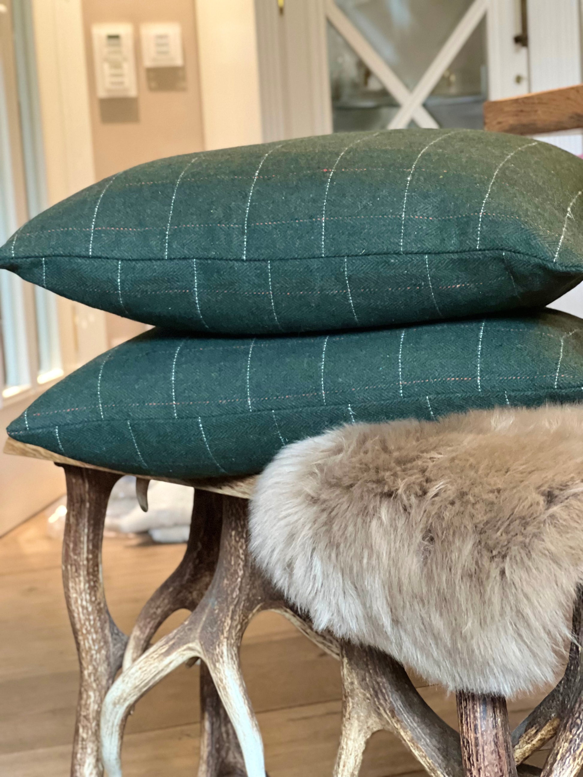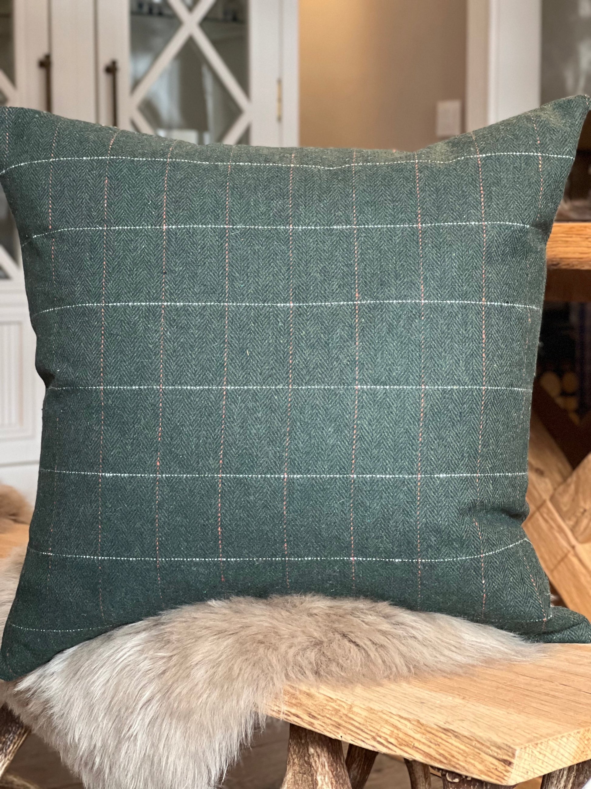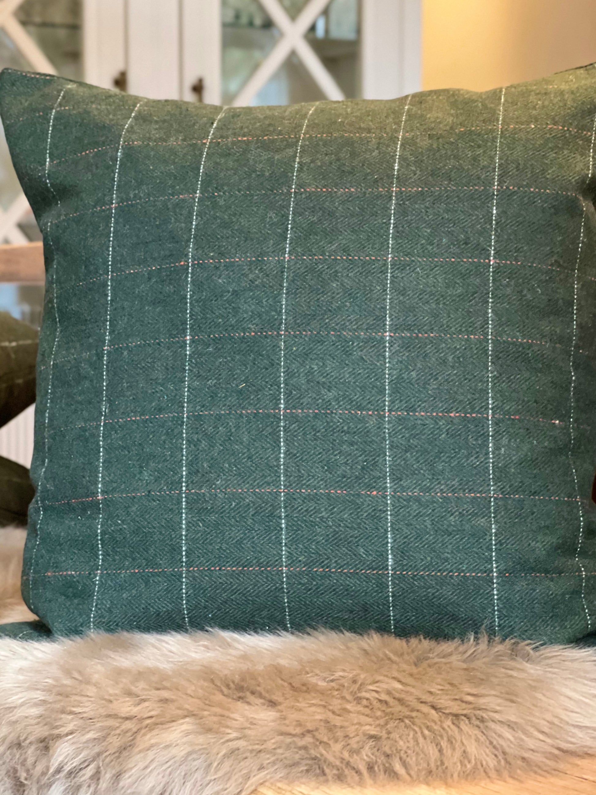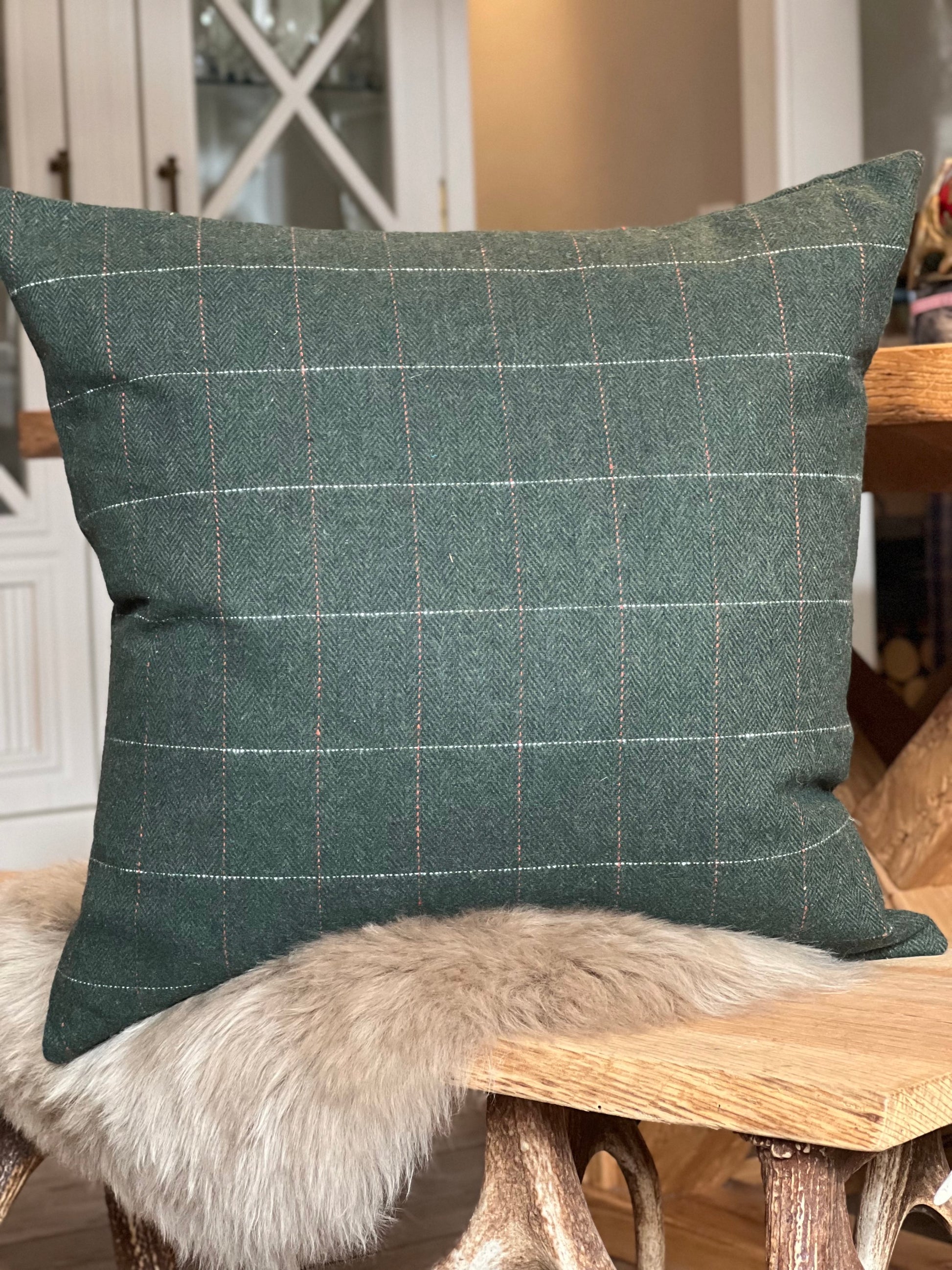 Ein großes Kuschelkissen mit Chalet-Charakter für kalte Wintertage. Das weiche Modell in gemütlichen Tannengrün schmückt ein dezentes Karo. Das weiche Federinlett kann man so richtig schön aufschütten und das Kissen damit voluminöser wirken lassen.