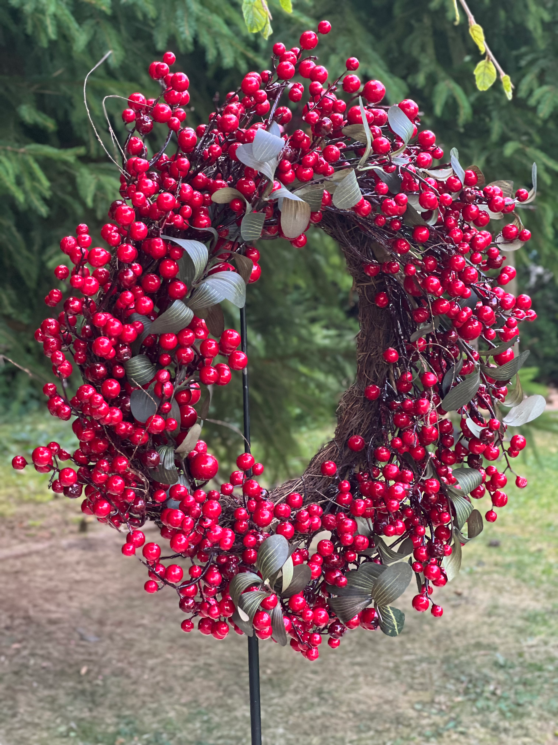 Unser Kranz aus roten Beeren ist ein naturgetreues Meisterwerk, das auf einem Reisigkranz gearbeitet wurde. Die leuchtenden roten Beeren machen den Kranz zu einem wunderschönen Blickfang, der perfekt als Türkranz oder Tischdeko für die Weihnachtszeit geeignet ist. Die künstlichen Beeren sehen täuschend echt aus und verleihen dem Kranz eine besonders authentische und festliche Note. Bringen Sie mit diesem Kranz aus roten Beeren einen Hauch von Festlichkeit in Ihr Zuhause!