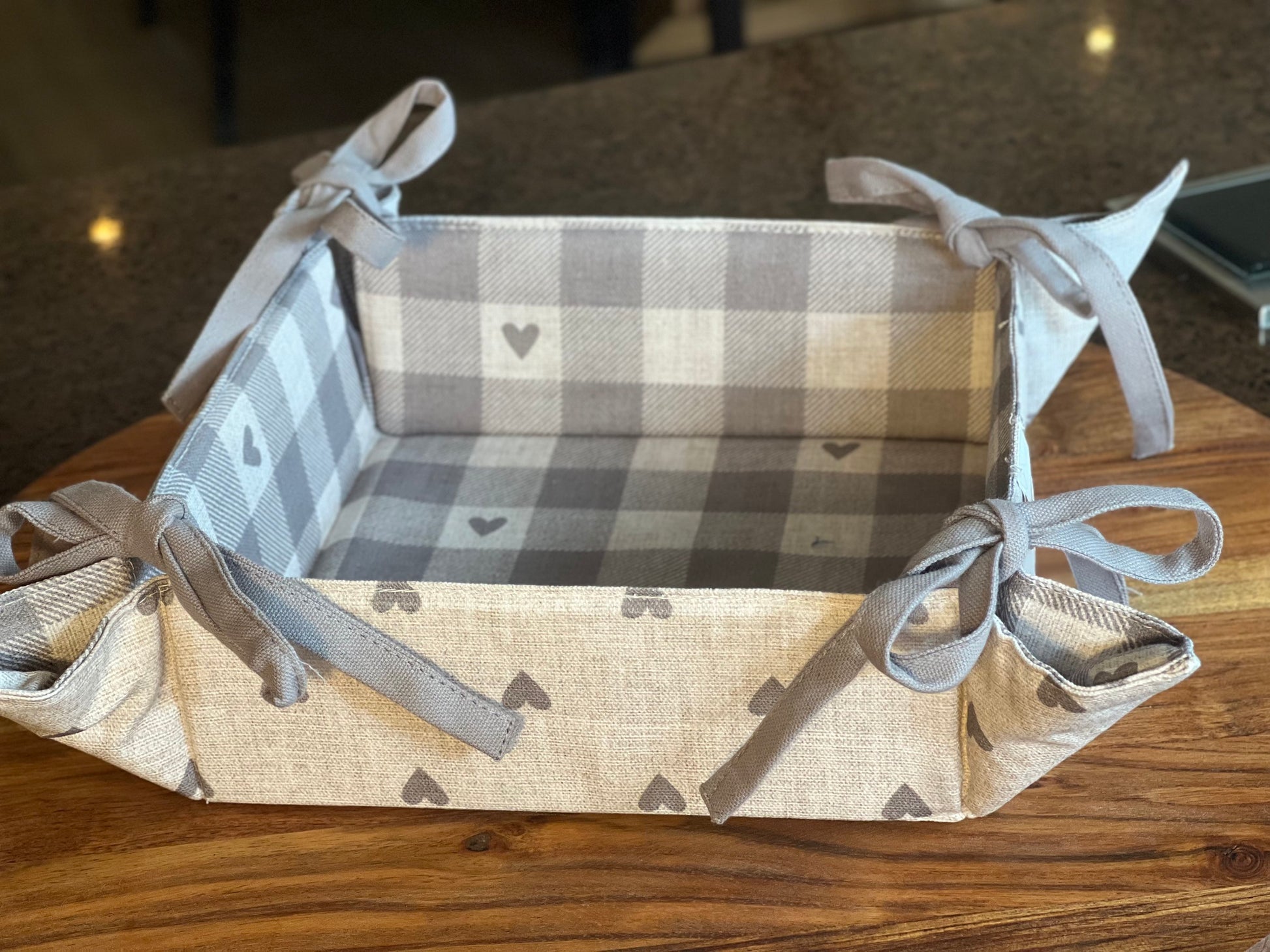 1 eckiger Brotkorb mit Schleifen 35 x 35 x 8 cm