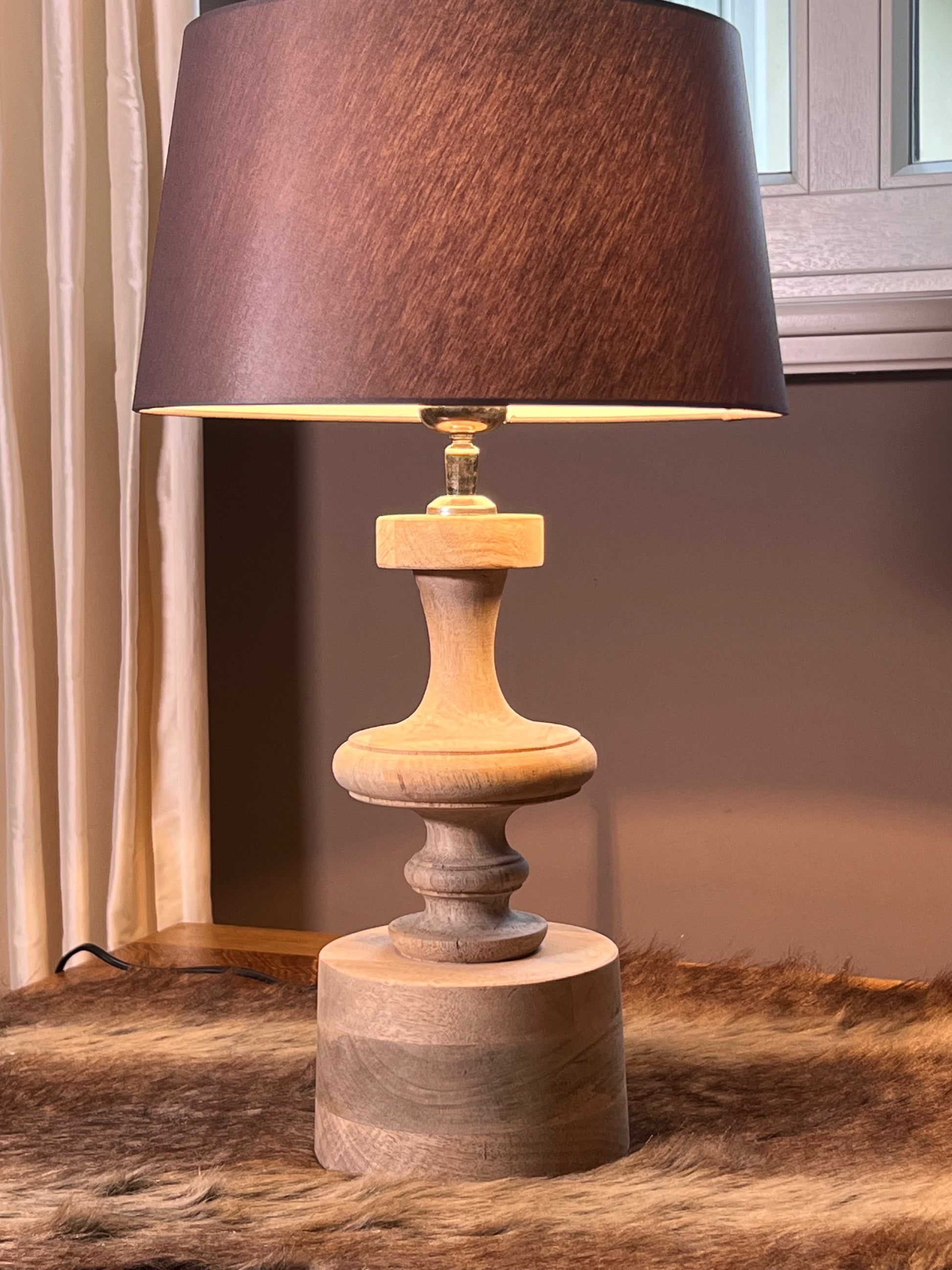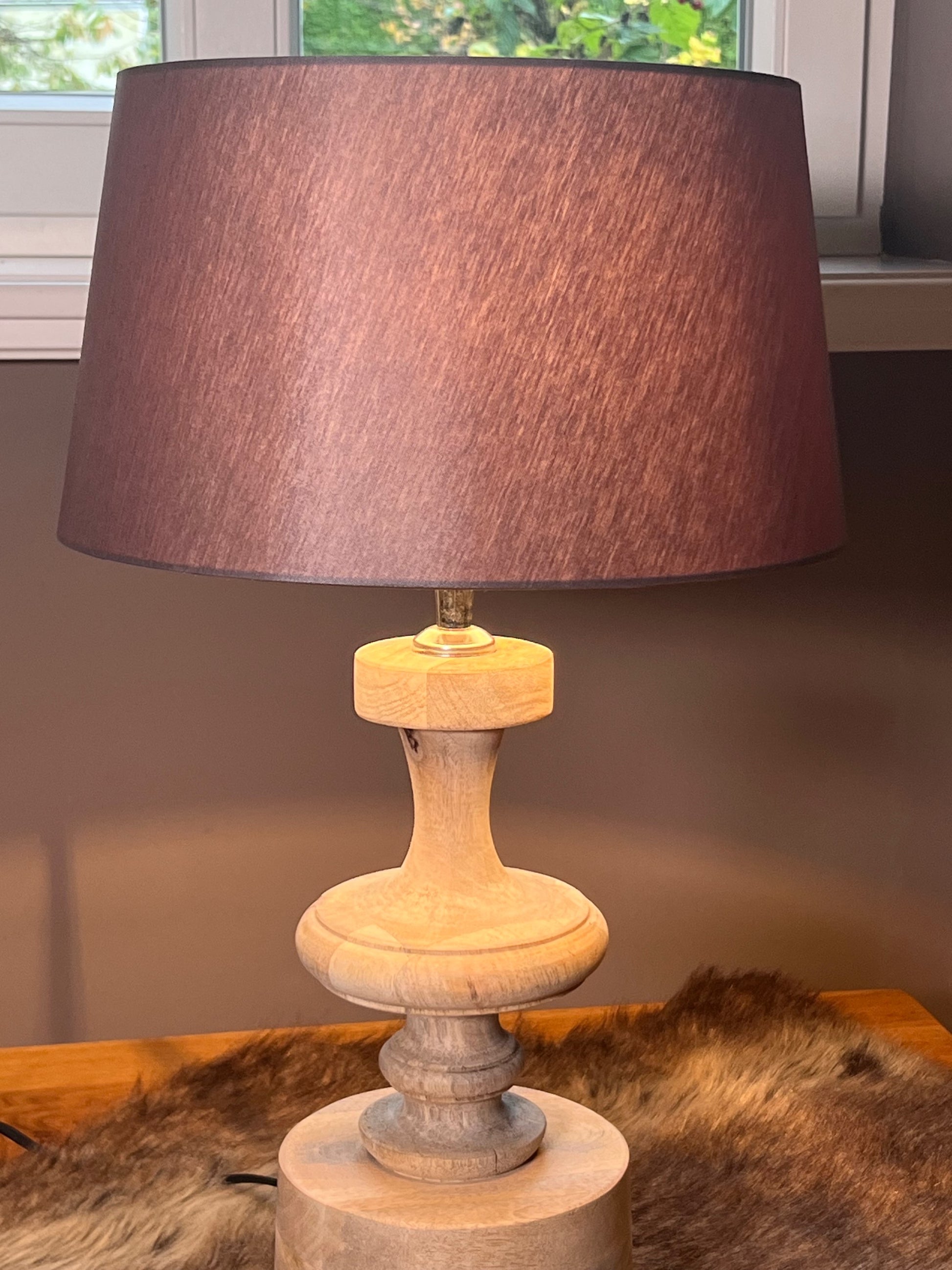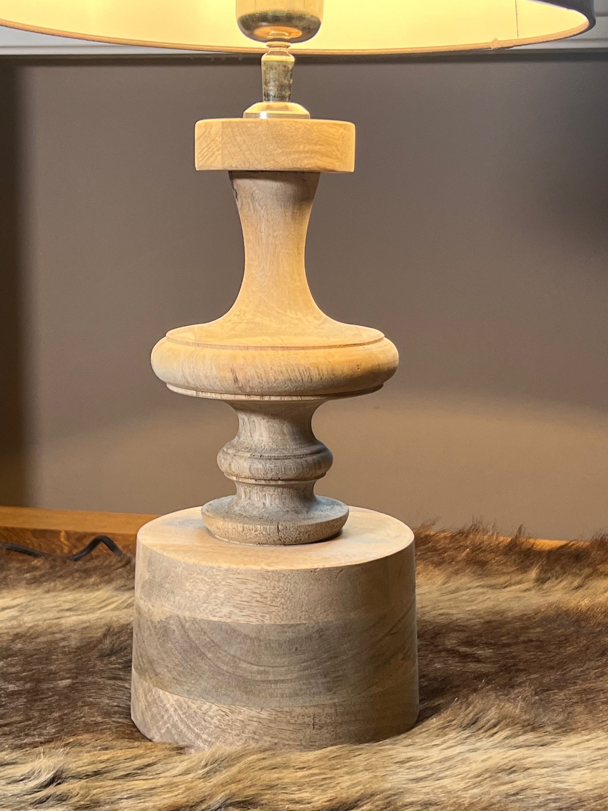 Der Lampenfuss ist aus Naturholz gedrechselt.