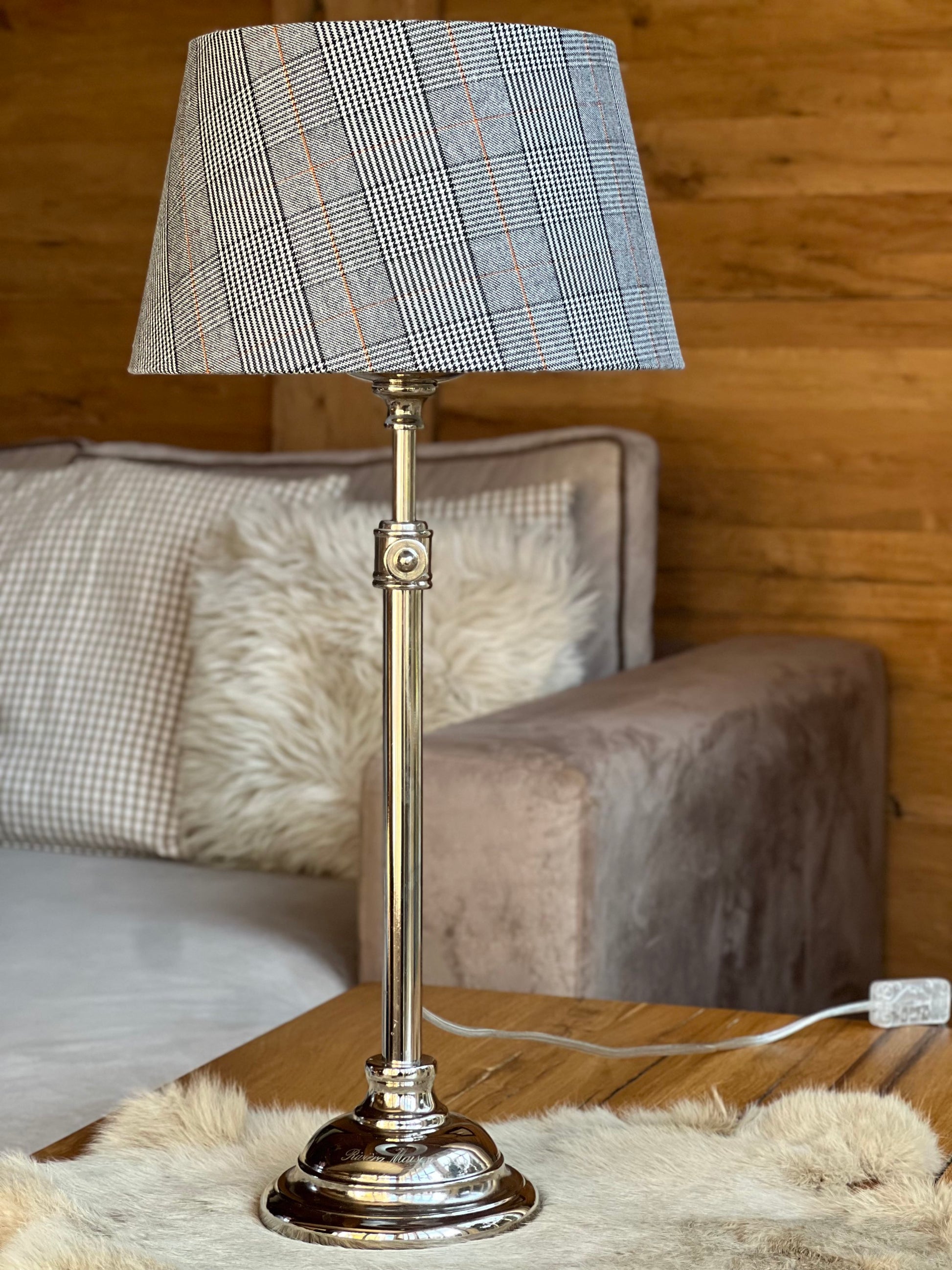 Diese Tischlampe spendet nicht nur Licht – sie verleiht deinem Raum auch Struktur und Stil! Mit ihrem höhenverstellbaren Aluminiumfuß und dem runden Lampenschirm in bringt sie rustikalen Charme und zeitlosen Chic in dein Zuhause. Perfekt für den alpinen Chalet-Look oder den so schönen Landhaus-Stil.