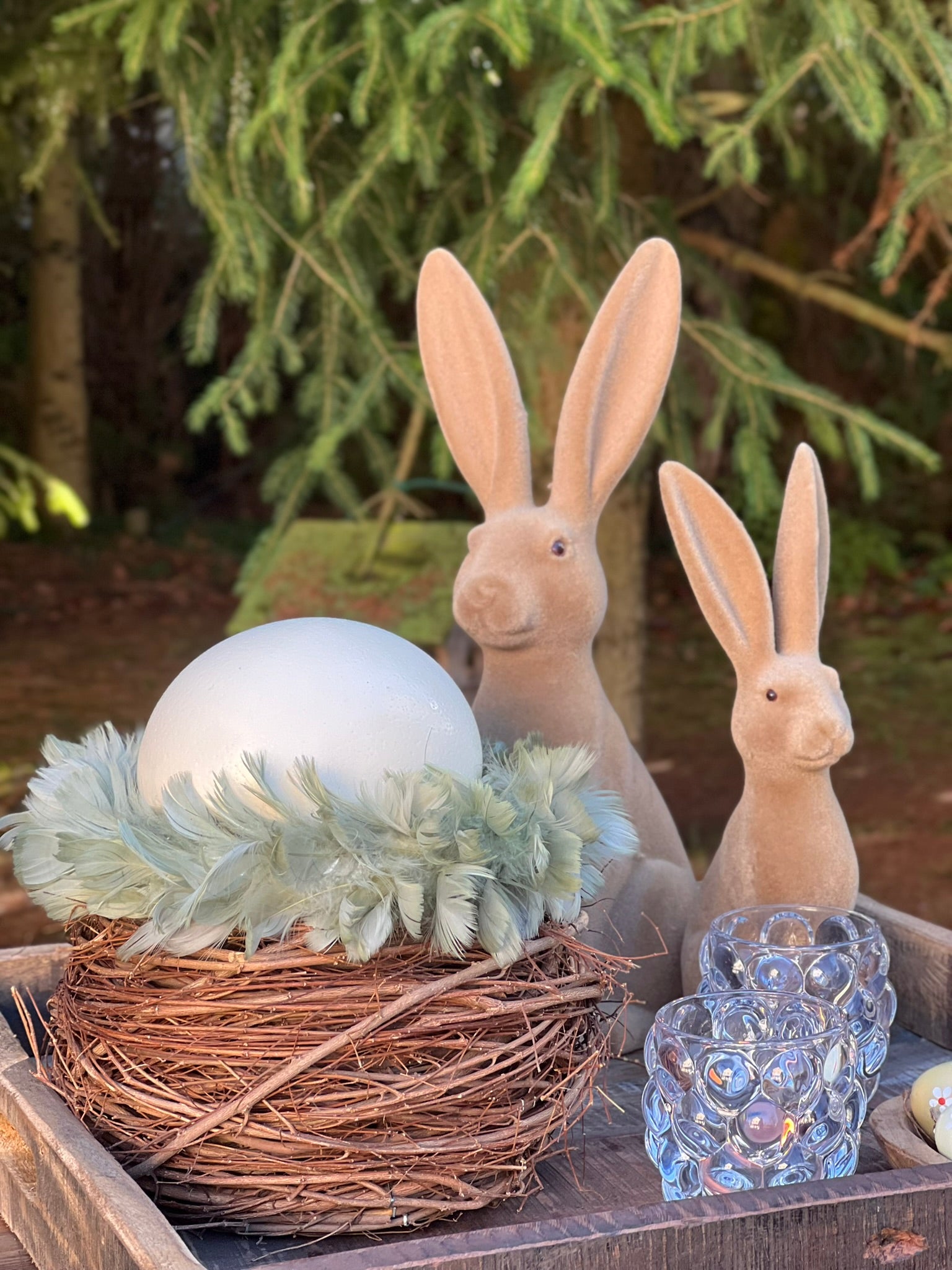 Wunderschönes Osternest aus natürlichen Reisigzweigen mit zartem grünem Federkranz und echtem Straußenei. Dieses liebevoll gestaltete Dekostück besticht durch seinen authentischen, natürlichen Look und fügt sich harmonisch in jeden Wohnstil ein. Perfekt als Frühjahrsdekoration für Wohnzimmer, Flur oder Esstisch. Ein zeitloses Accessoire, das Ostern und Frühling ins Haus bringt und mit seiner eleganten Schlichtheit besticht.