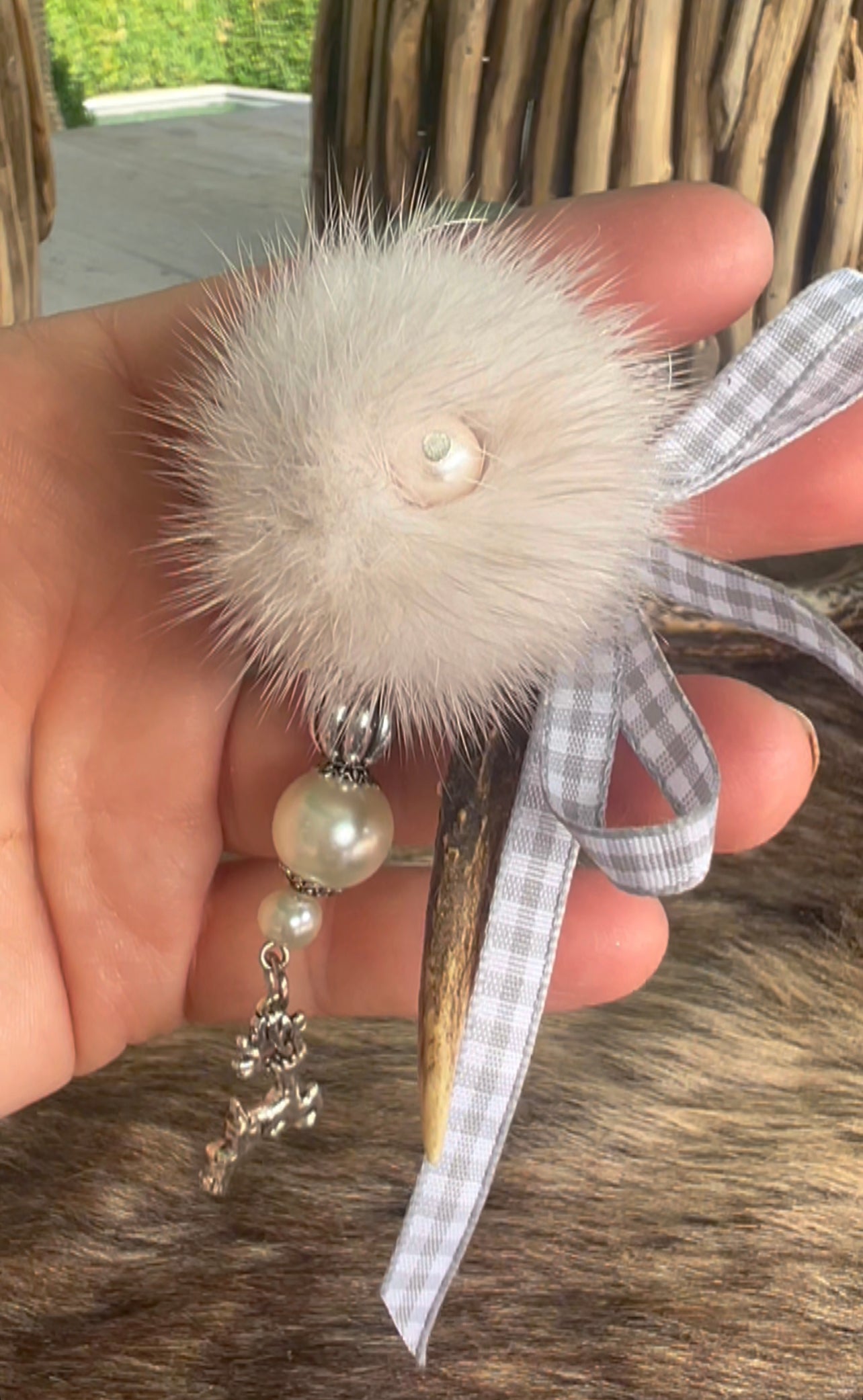 Süßer Schlüsselanhänger in Hellgrau mit wunderschönen Details: