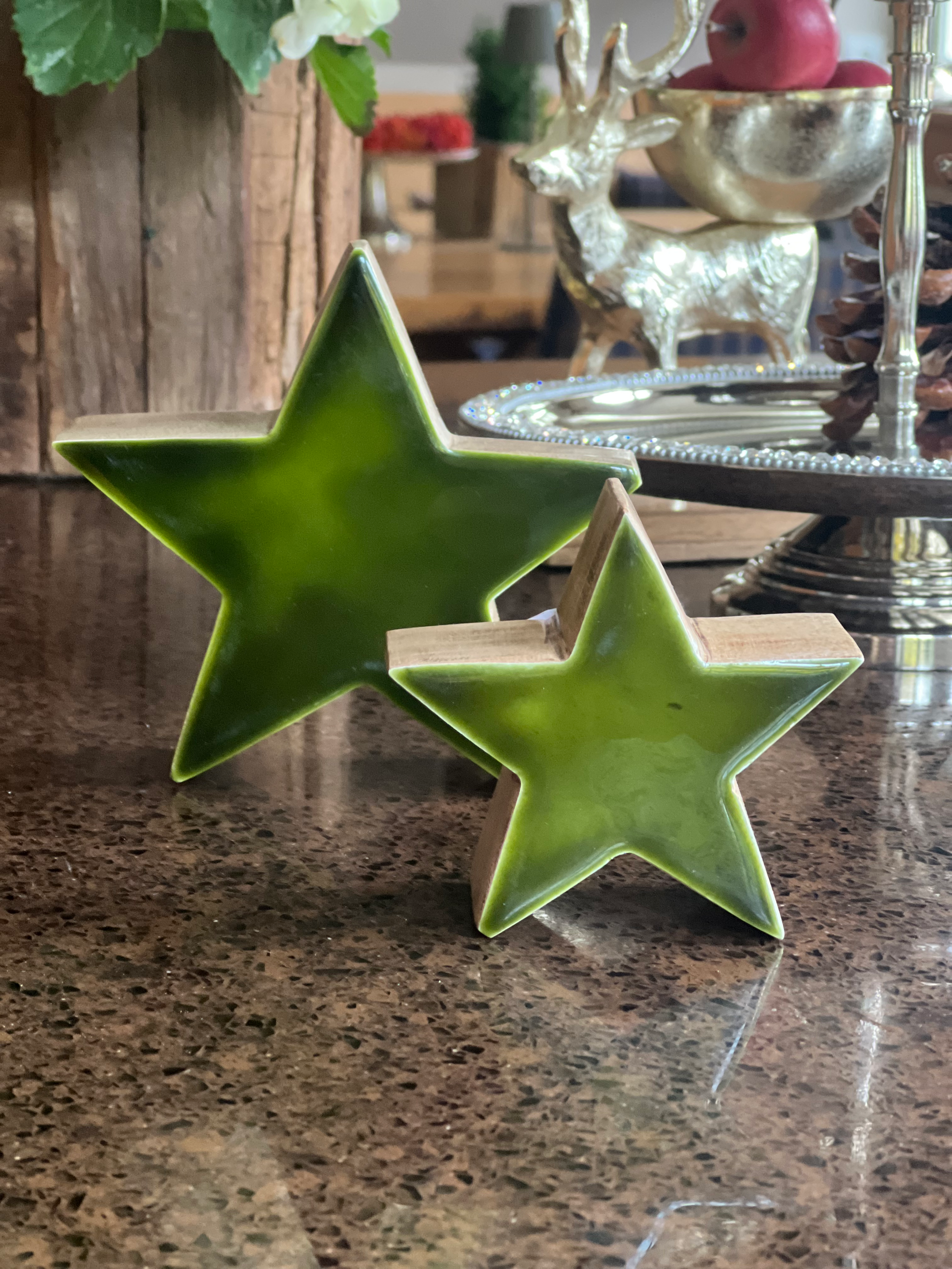 Holz -Sterne in Grün – stilvolle Deko in drei Größen