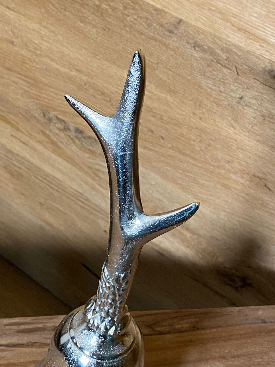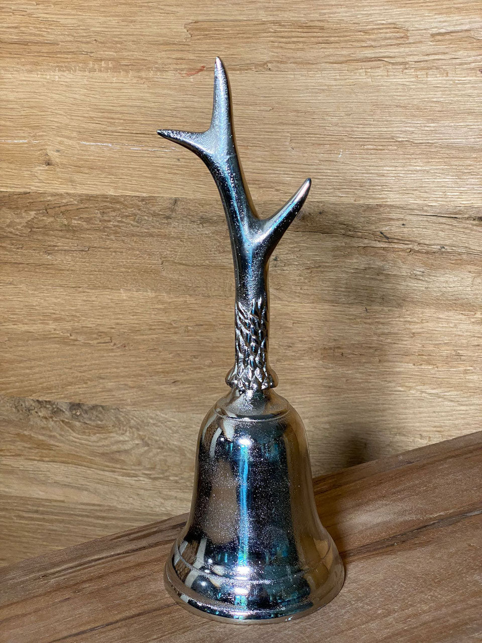 Zauberhafte große silberne Glocke mit Geweihgriff. Ein echter Hingucker.