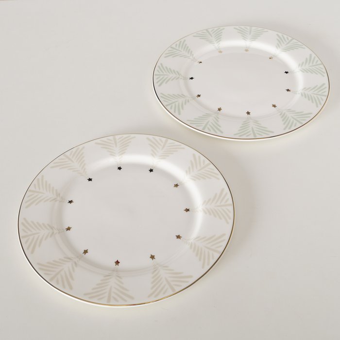 Unser zauberhaftes 2er Weihnachtsgeschirr setzt festliche Akzente auf Ihrem Tisch. Weiße Teller mit liebevoll gestaltetem Tannenbaum-Print und funkelnden Sternspitzen verbreiten Weihnachtsstimmung pur. Perfekt für festliche Mahlzeiten und unvergessliche Feiern! 🎄🌟