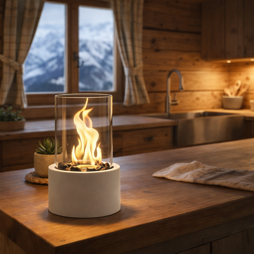 Eleganter Tischkamin für gemütliche Momente – betrieben mit Bioethanol für saubere, flammenlose Wärme. Dieses stilvolle Accessoire besticht durch sein modernes Design in Dunkelgrau und Beige und passt perfekt auf jeden Tisch oder Sideboard. Mit einer Höhe von 28 cm und 21 cm Durchmesser schafft es eine angenehme Atmosphäre ohne Rauch oder Asche. Im Set enthalten sind dekorative Steine und ein praktischer Löscher – alles, was du für sicheres Genießen brauchst. Bioethanol nicht im Lieferumfang enthalten. Dein neuer Liebling für Zuhause!