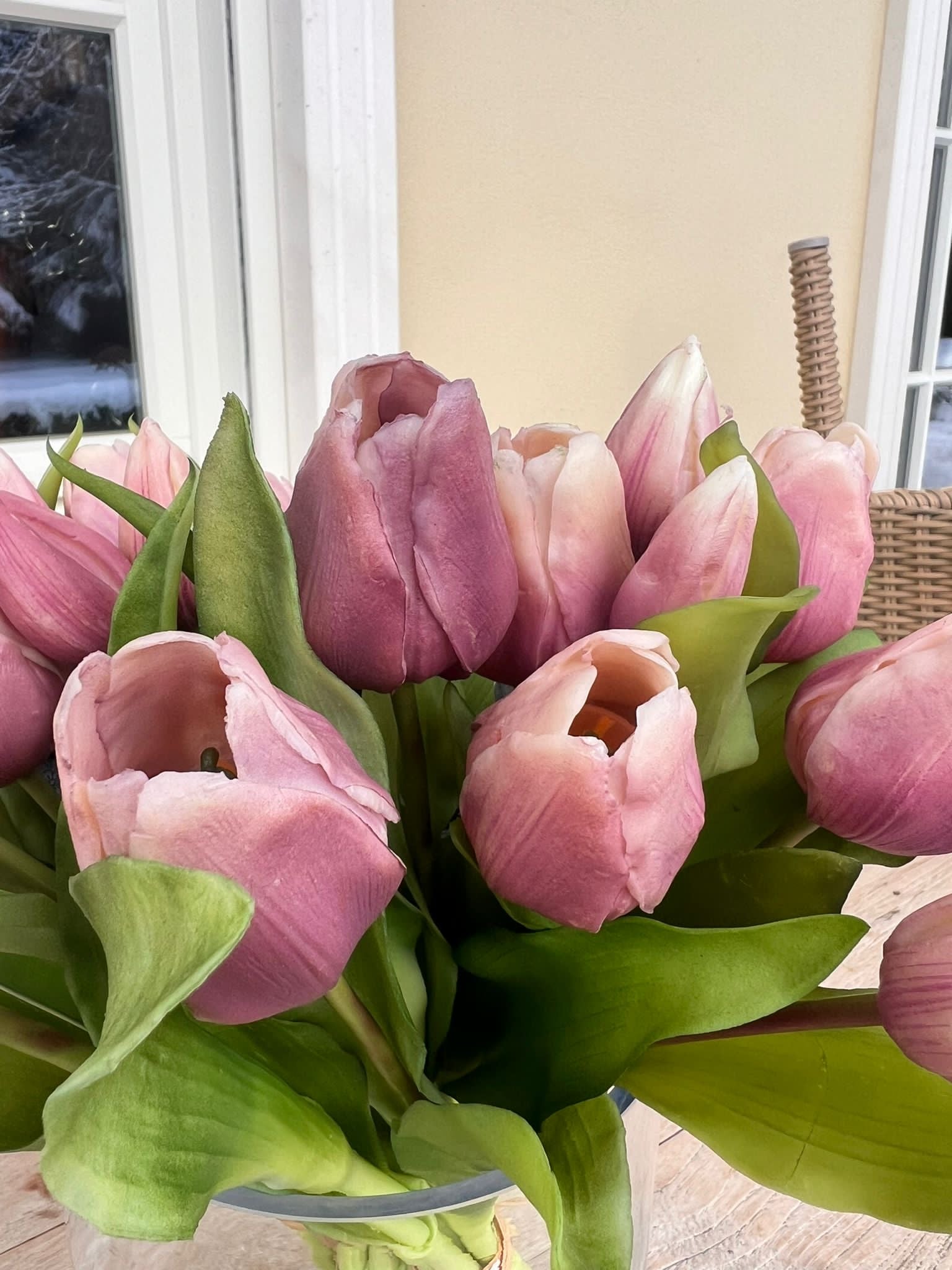 Wunderschöner Strauß Tulpen in verschiedenen Farben. Die Tulpen sind künstlich, aber täuschend echt.