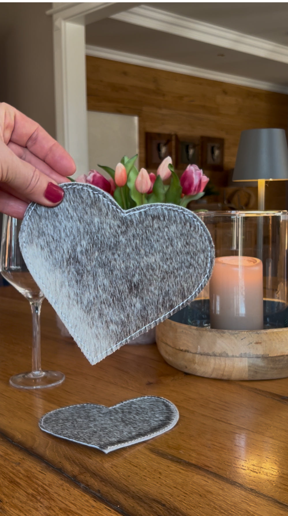 Der Untersetzer aus grauer Kuhhaut in Herzform ist ein stilvolles und zugleich praktisches Accessoire für deine Esstischdekoration. Die hochwertige Verarbeitung sorgt für Langlebigkeit und eine edle Optik. Mit diesem einzigartigen Stück verleihst du deinem Esstisch eine alpine Note und setzt stilvolle Akzente.