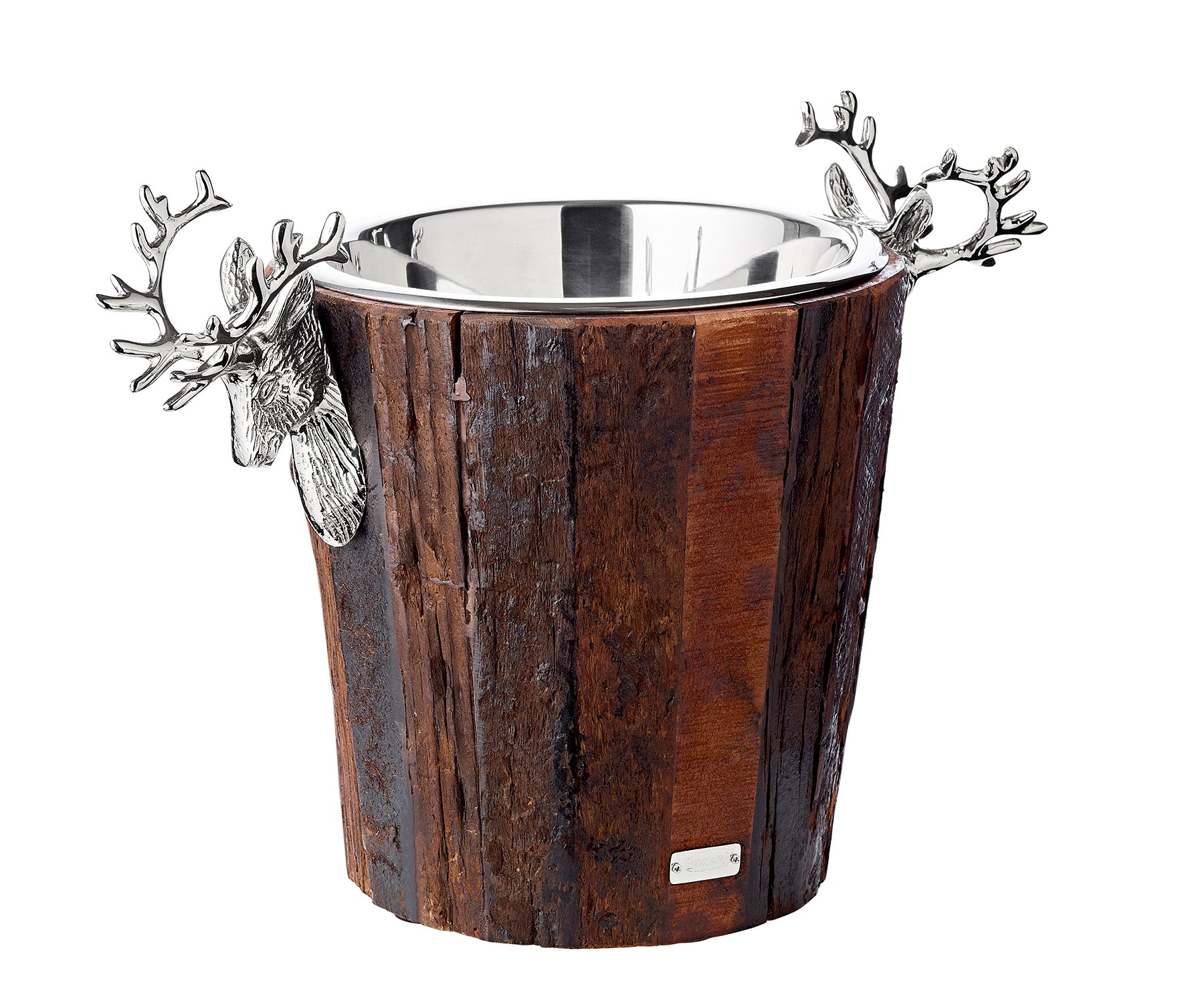 Ein hochwertiger und stilvoller Wein-/ Sektkühler, der nicht nur für Wein und Sekt geeignet ist. Auch Tulpen und andere Blumen, je nach Jahreszeit, machen sich darin ganz hervorragend. Die Holzoptik sowie die beiden Hirschköpfe rechts und links machen diesen Kühler zu etwas ganz Besonderem.