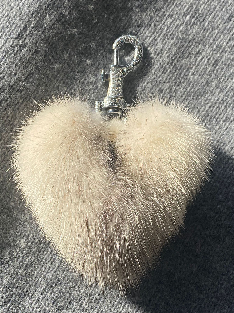 Trendiger Schlüsselanhänger/ Taschenanhänger mit silbernem Karabinerhaken mit Strasssteinen in Herzform.